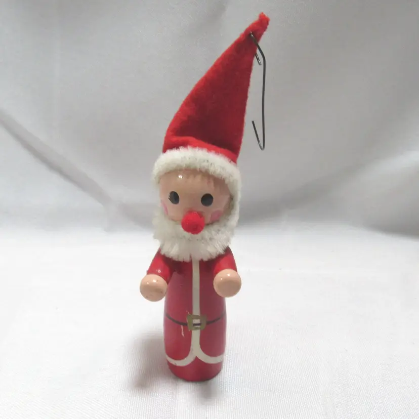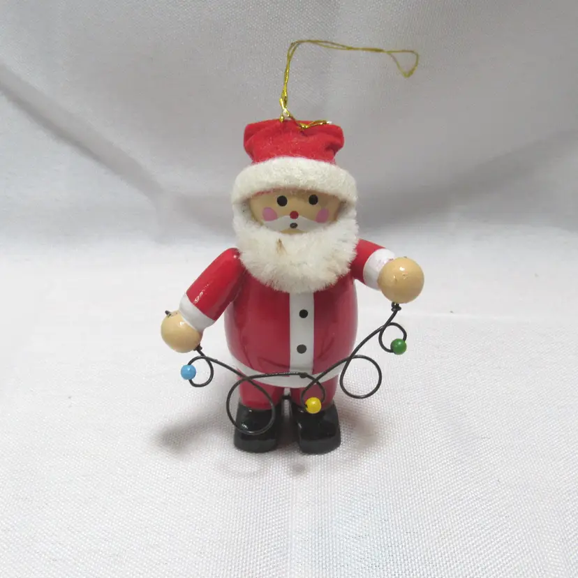 3 VTG Wooden Santa Claus Christmas Ornaments