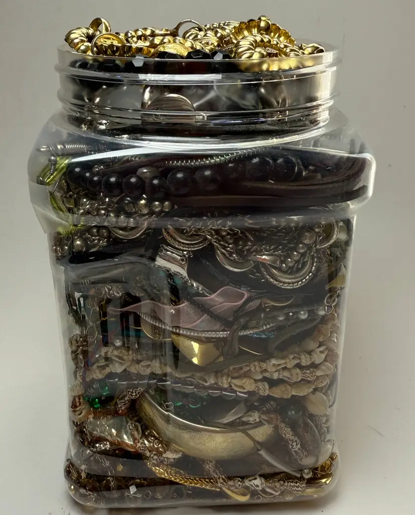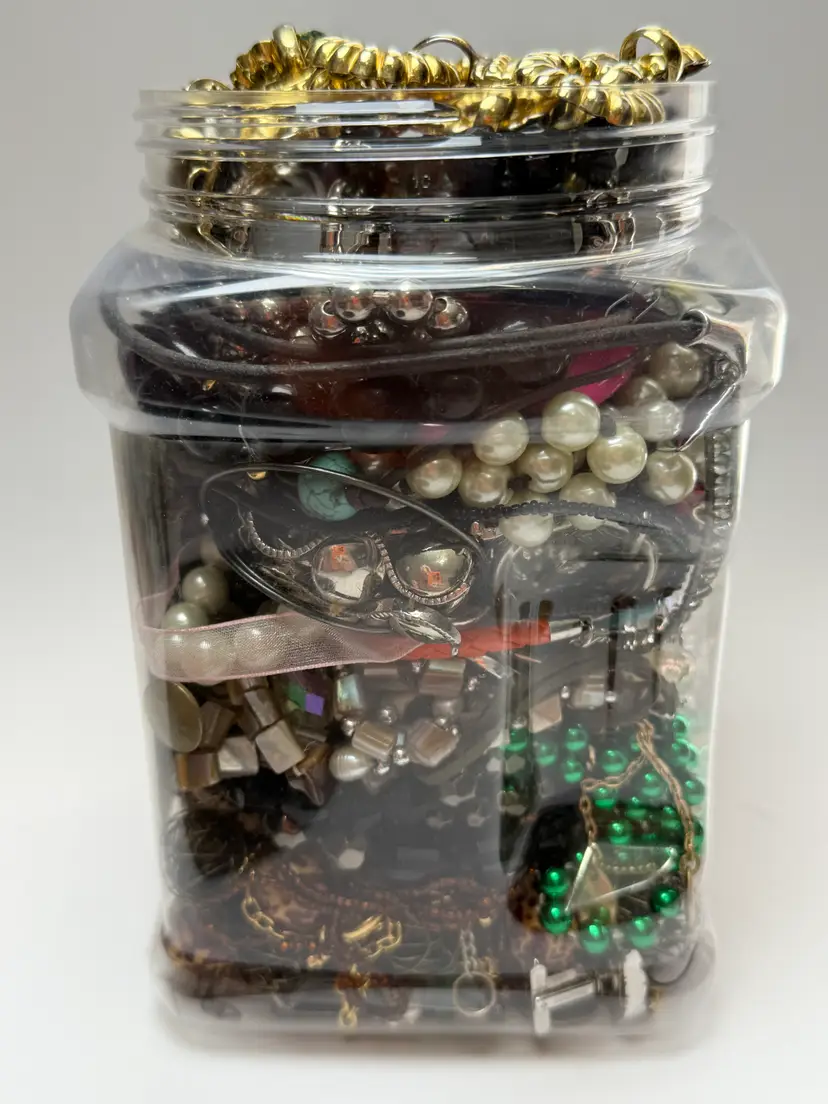 3.14lbs Vintage To Now Craft Jewelry Lot Many Wearable Items Brooches Necklaces Earrings Bracelets Chains Pendants Beads. All used jewelry. Some may have wear, be broken or tangled. There are lots of wearable items as well. Single earrings are most likely included. There may be necklaces and such that need to be untangled. Also includes items that may need repair or that are broken or have missing stones. I would say that this lot is heavy on bracelets.
