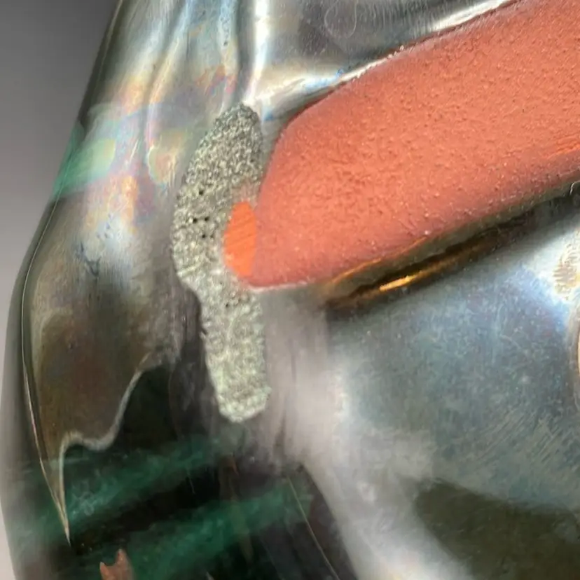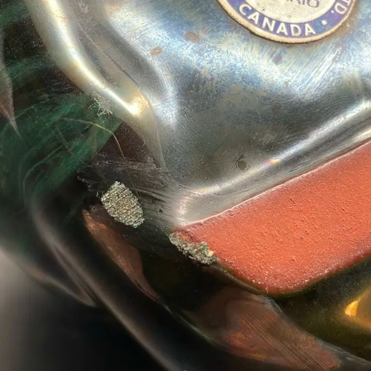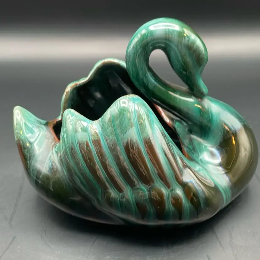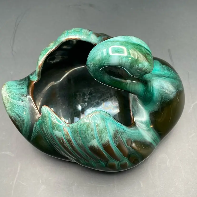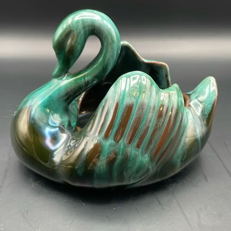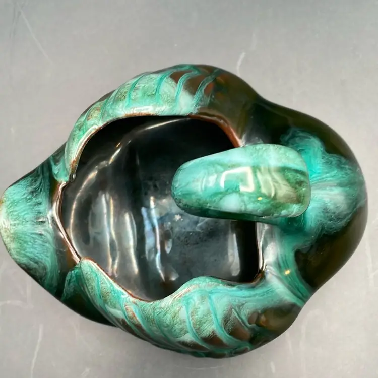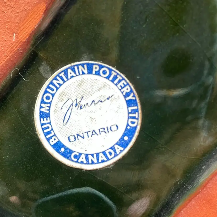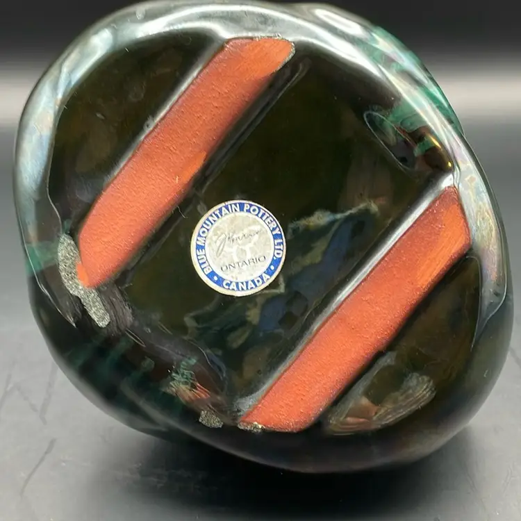 About 4” tall x 5.5” wide. Beautiful green glaze. Made in Canada. A few places of wear on the bottom - see pictures. No chips or cracks.