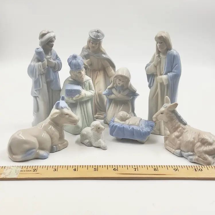 👉Measurements in photos 👉 Joseph Mary Jesus 3 Wisemen Donkey Cow Lamb 👉No Chips or Cracks 👉 Review Photos for Best Condition Description 👉 Sold as Shown