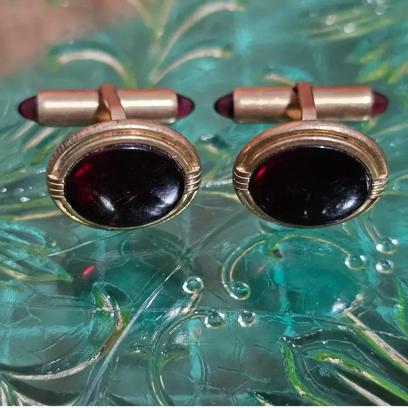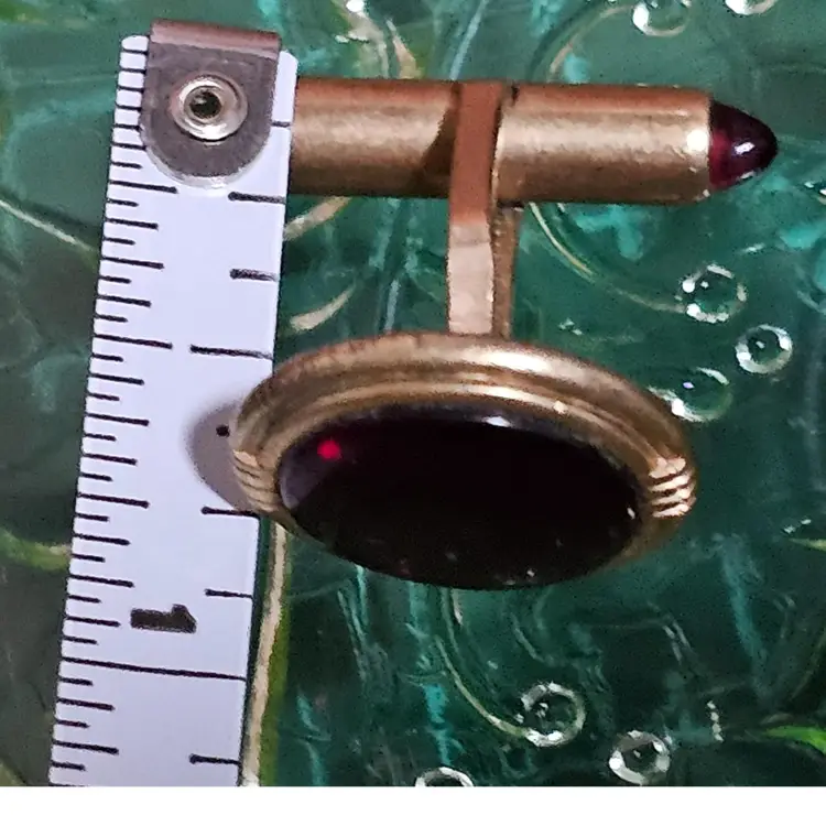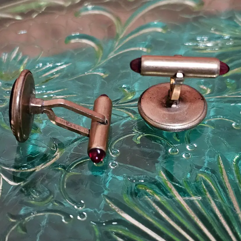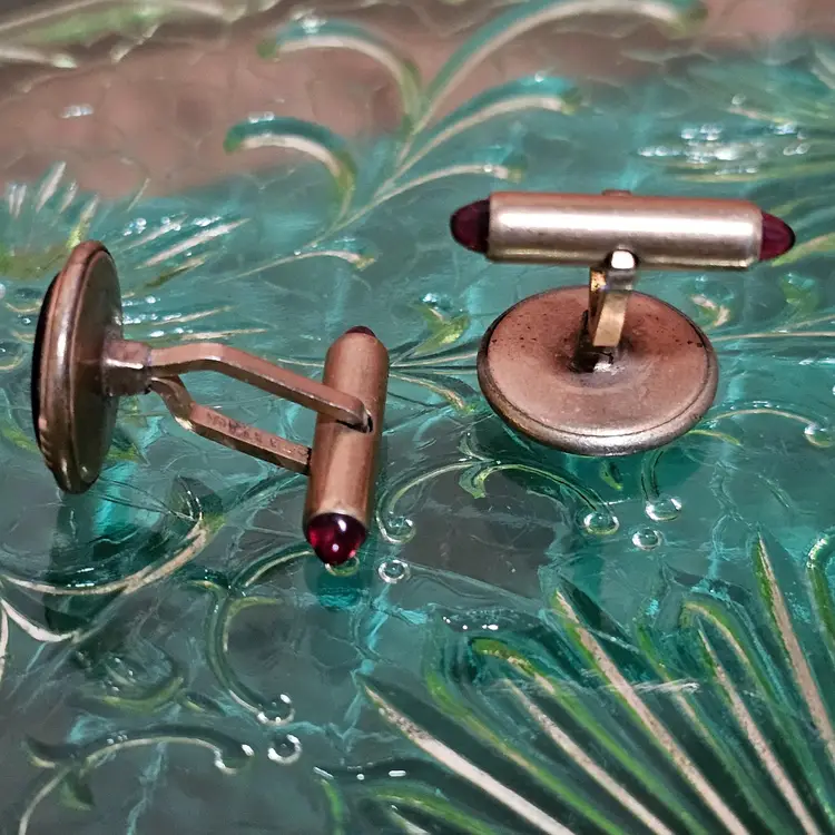 Getting 4 sets of men's cufflinks. The red cabochon bullet flip cufflinks are marked Krementz Pat Pending!