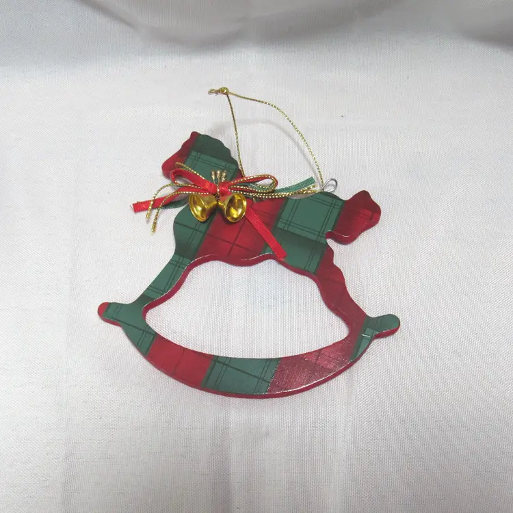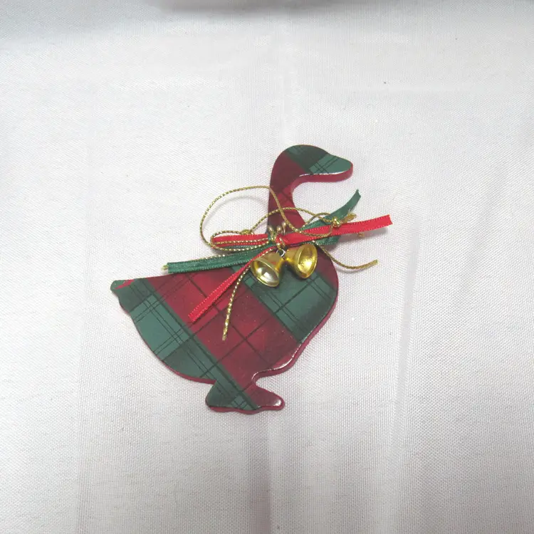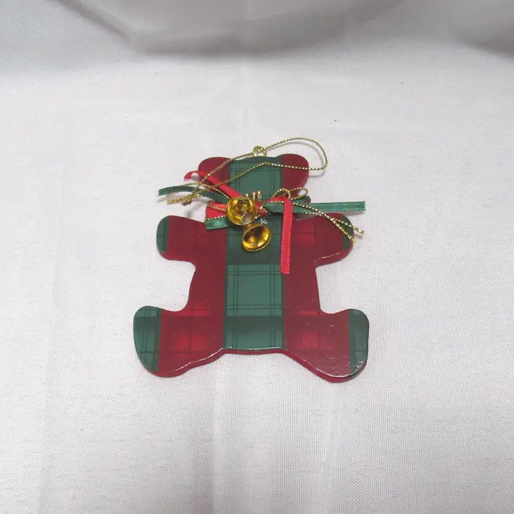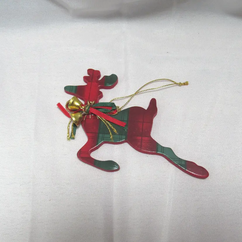 4 Pc Wooden Green & Red Plaid Animal Christmas Ornaments