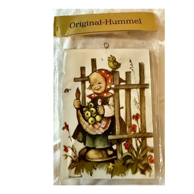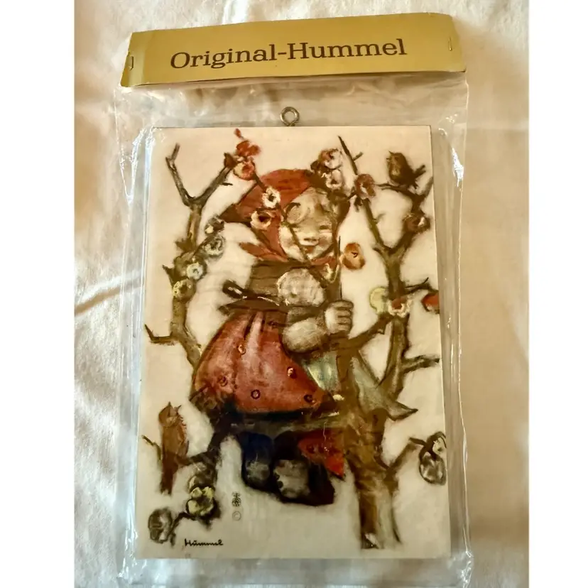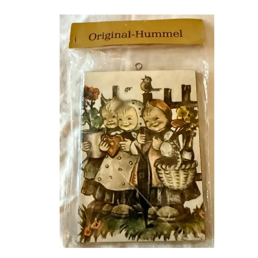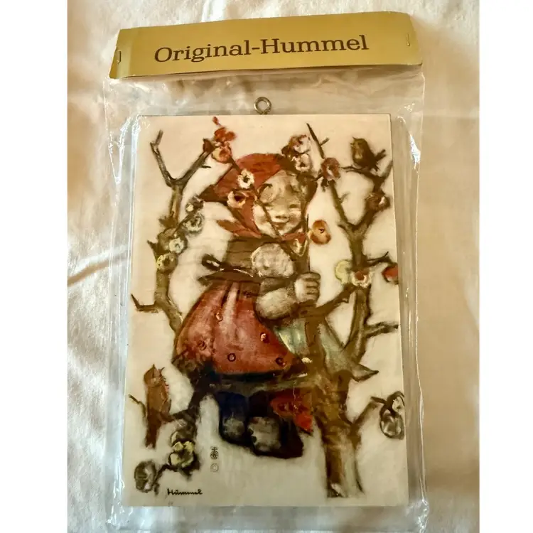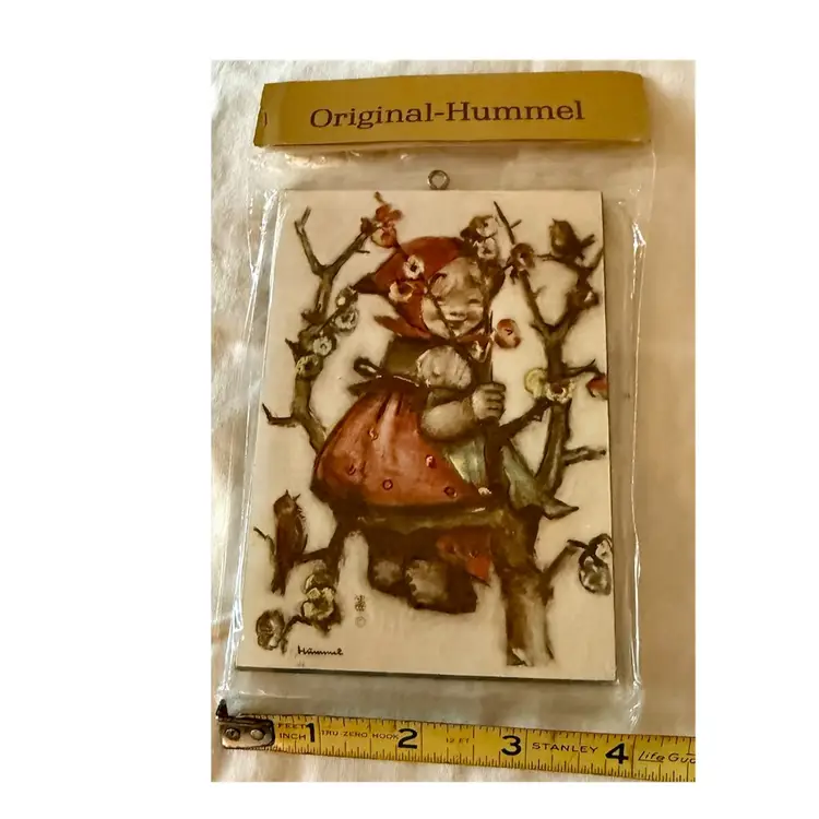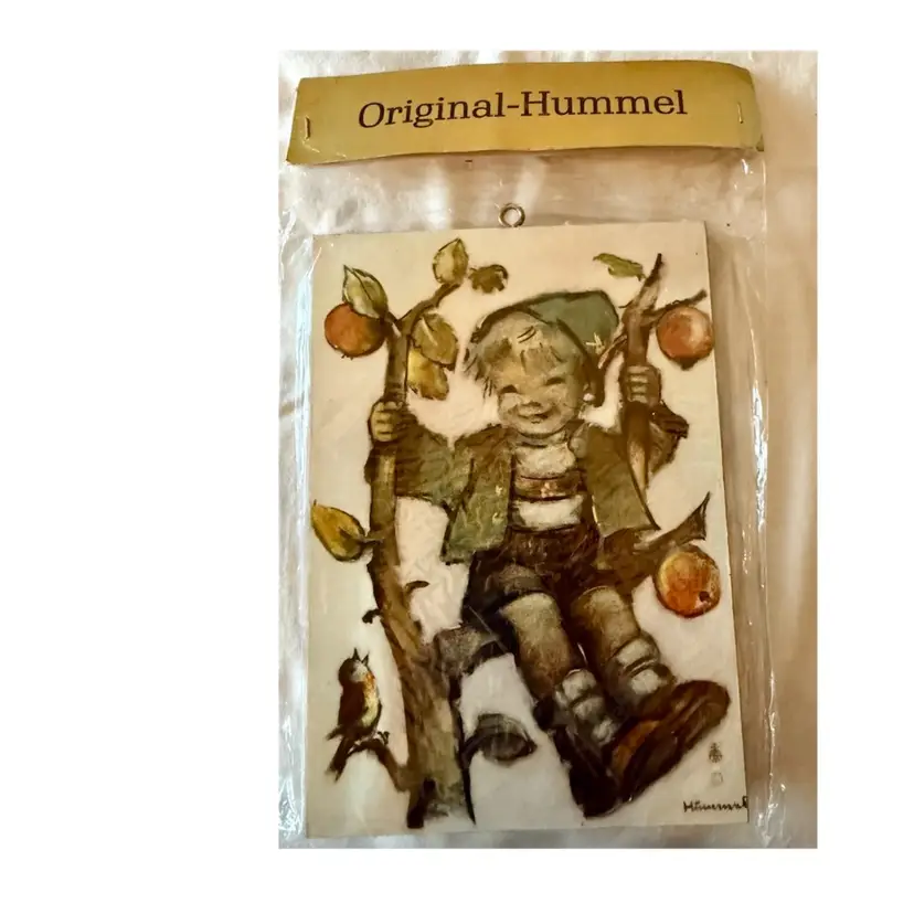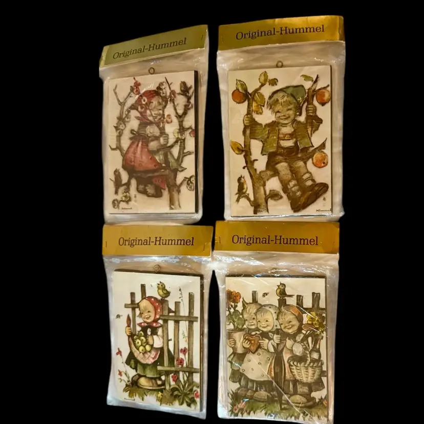 4 Vintage Original Hummel Children with Apples art prints on wooden plaques Made in West Germany In original packaging See pictures for details and measurements. Glad to answer any questions.