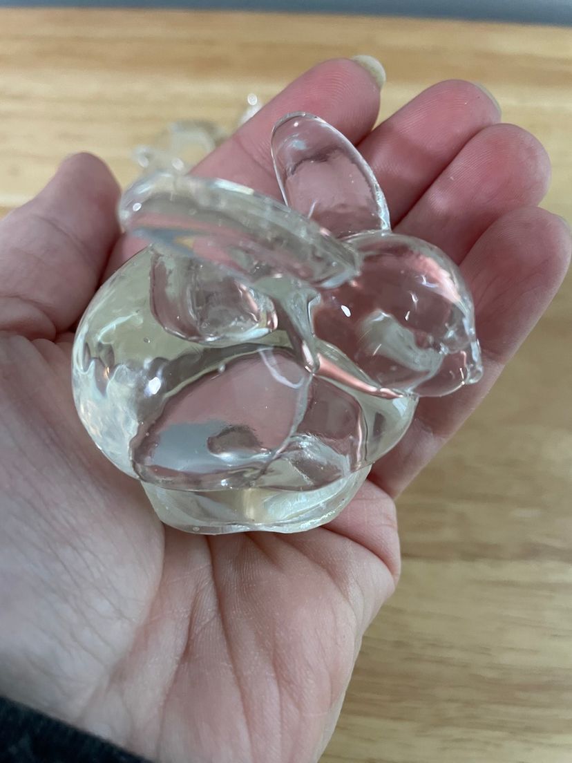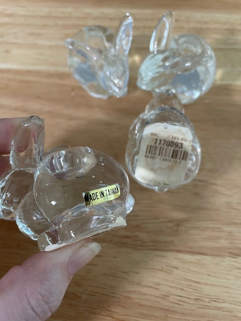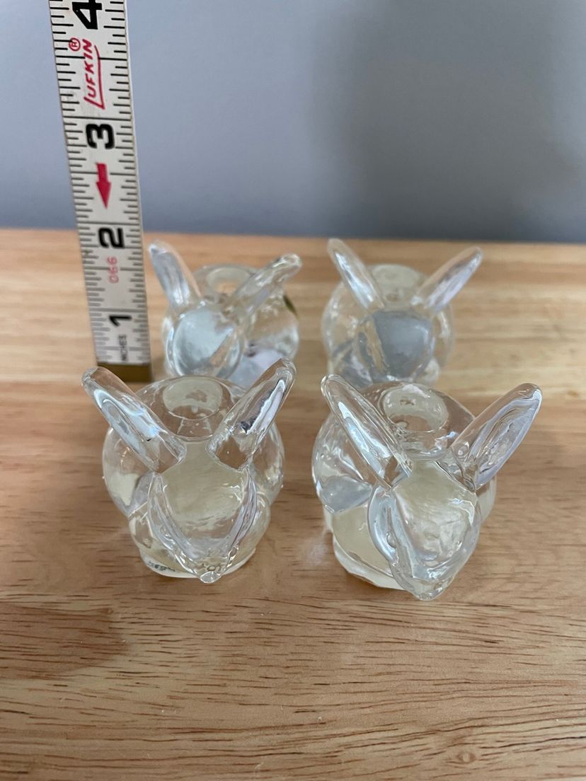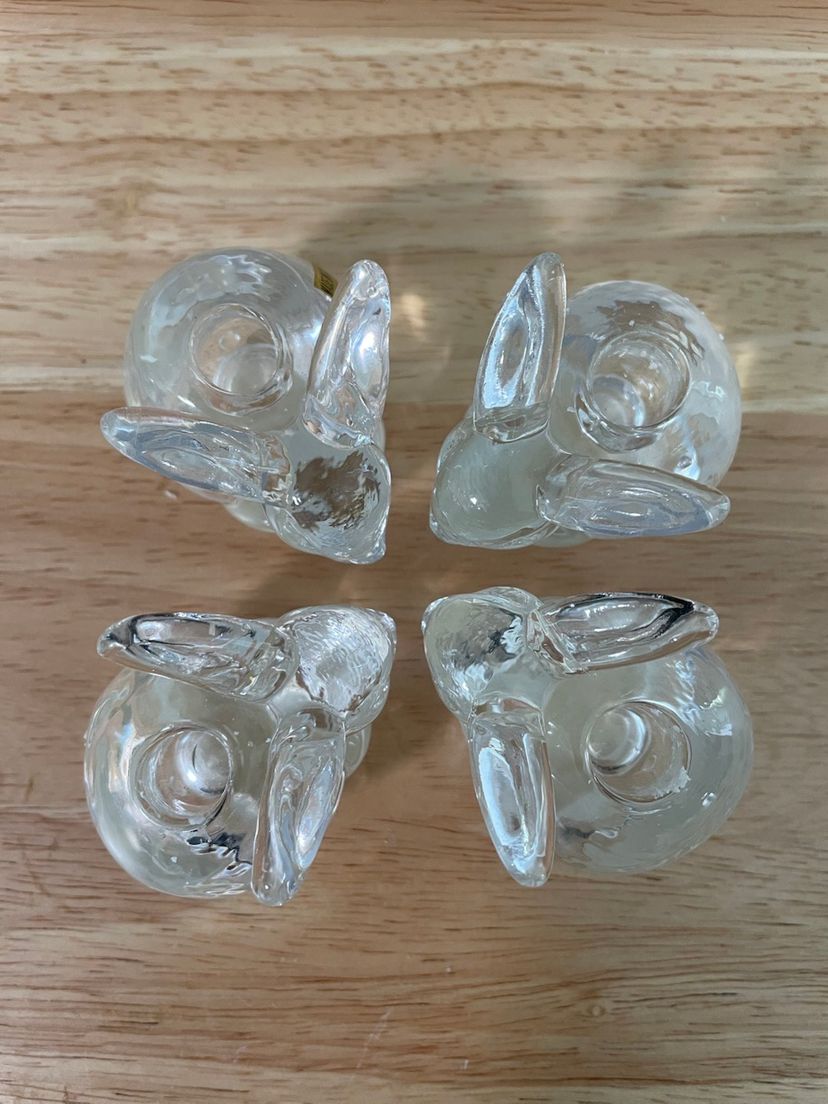 Adorable heavy bunny clear glass taper candle holders. These hold thin candles. No chips or cracks. Candles not included.