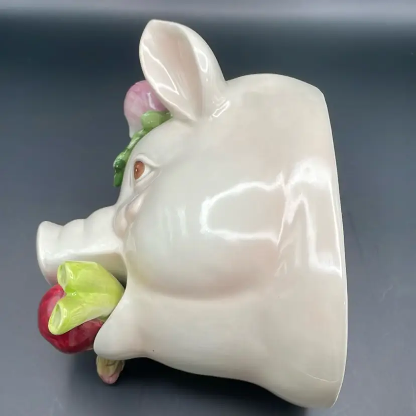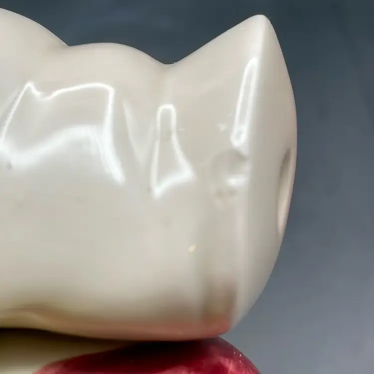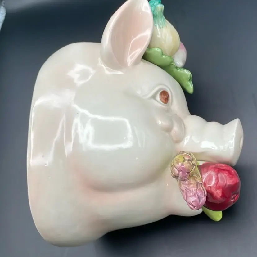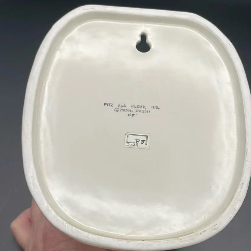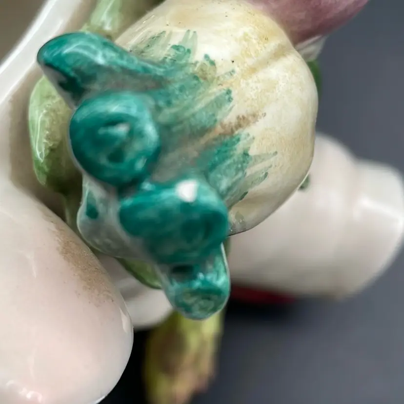 What a derpy conversation piece! 1983 wall pocket/planter. About 8” tall x 5.5” wide x 6.5” deep. He has a tiny paint chip on the onion leaf - see picture. I discovered when listing this item he has a crack down the back by the hanger. So sad! See pictures. I’ve cut the price to reflect the damage but still wanted to share him in case someone wants to give this unique guy a home. Thanks for looking at him!