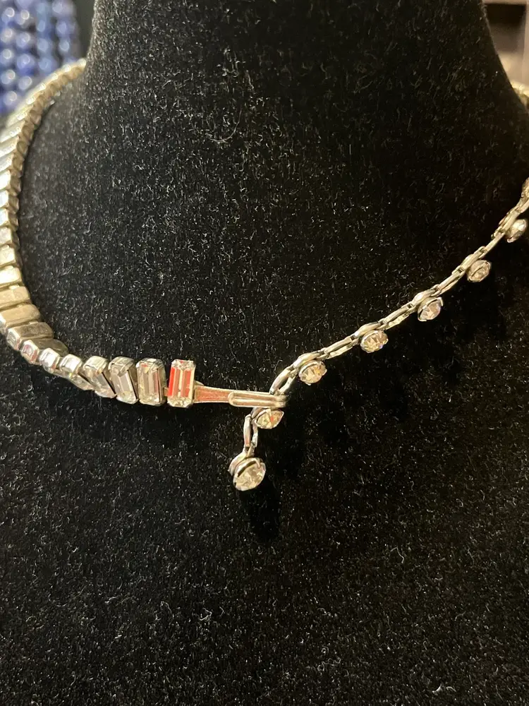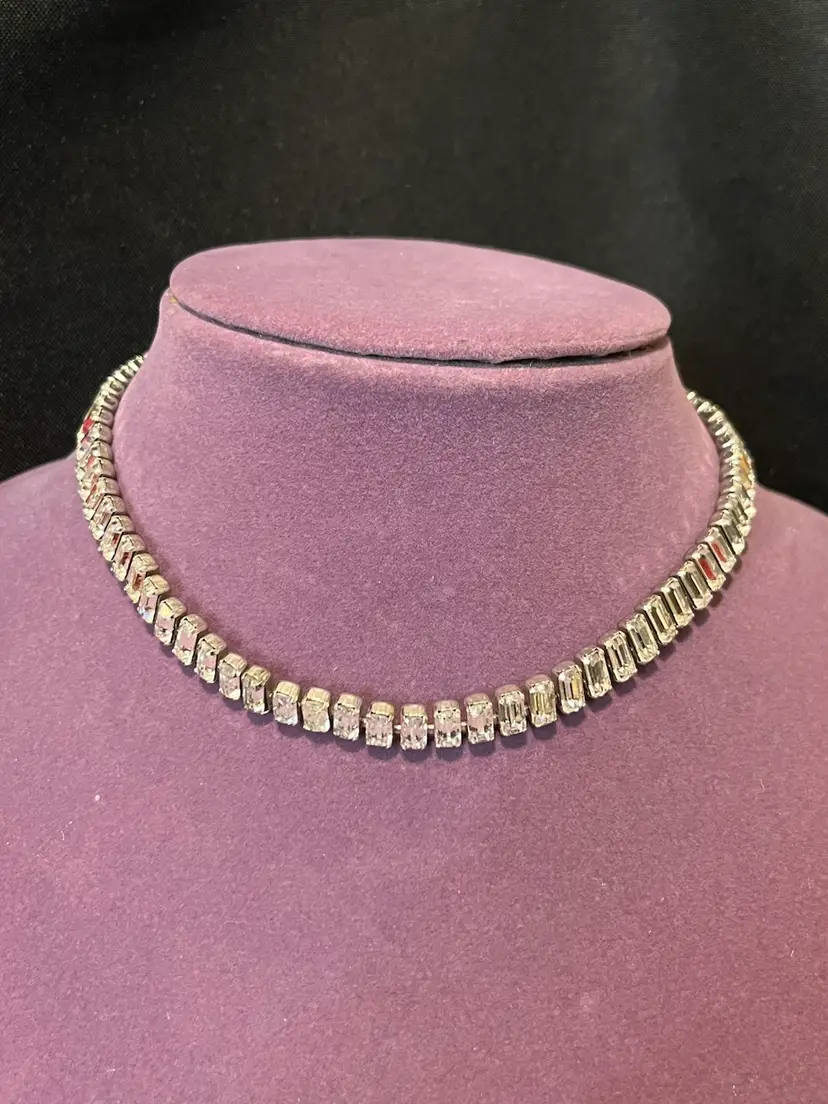 43. Vintage Duane Rhodium Plated 19” Glass Rhinestone Necklace