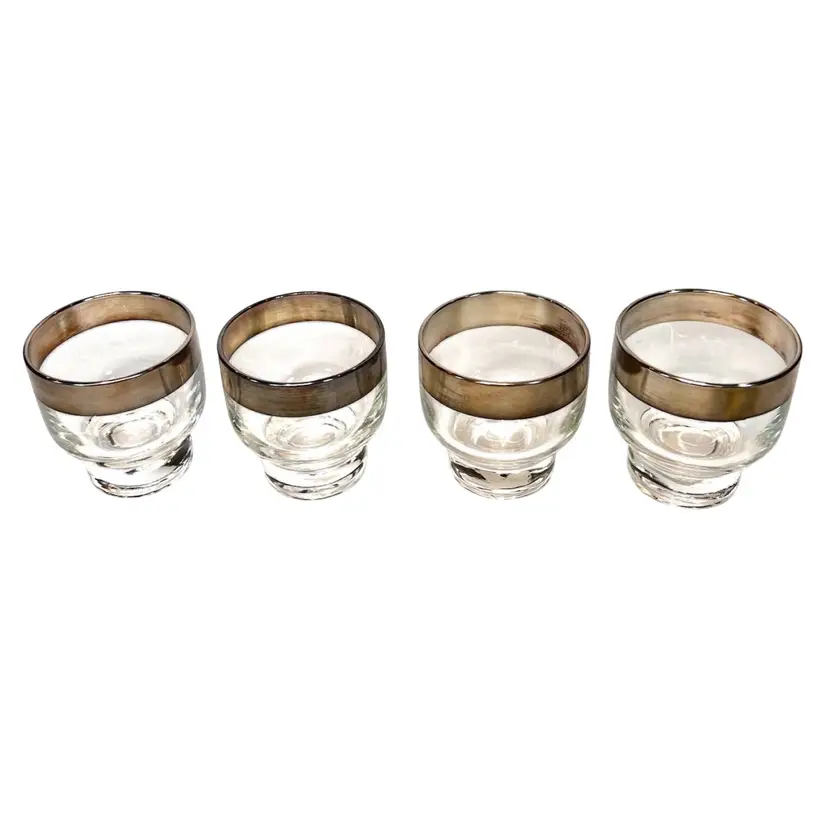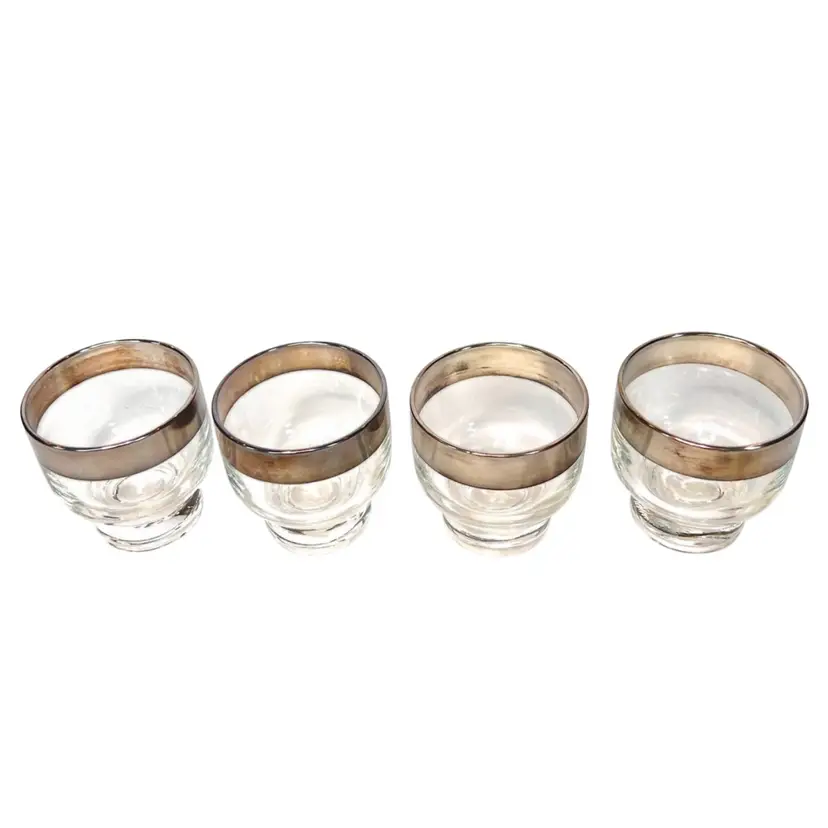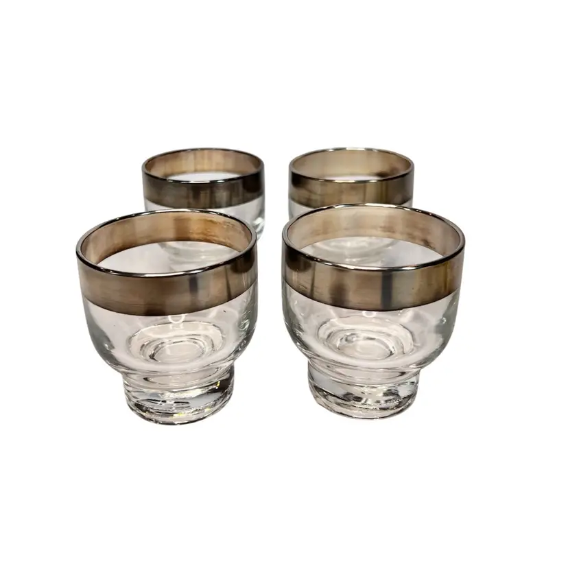 4pc BEVERAGE GLASS By Dorothy Thorpe 1960s Sterling Band Overlay Holiday Hosting Christmas Holiday Party Celebration Winter Gift Thanksgiving Harvest Autumn Halloween Party Celebration Gift Mothers Day Anniversary Birthday Easter