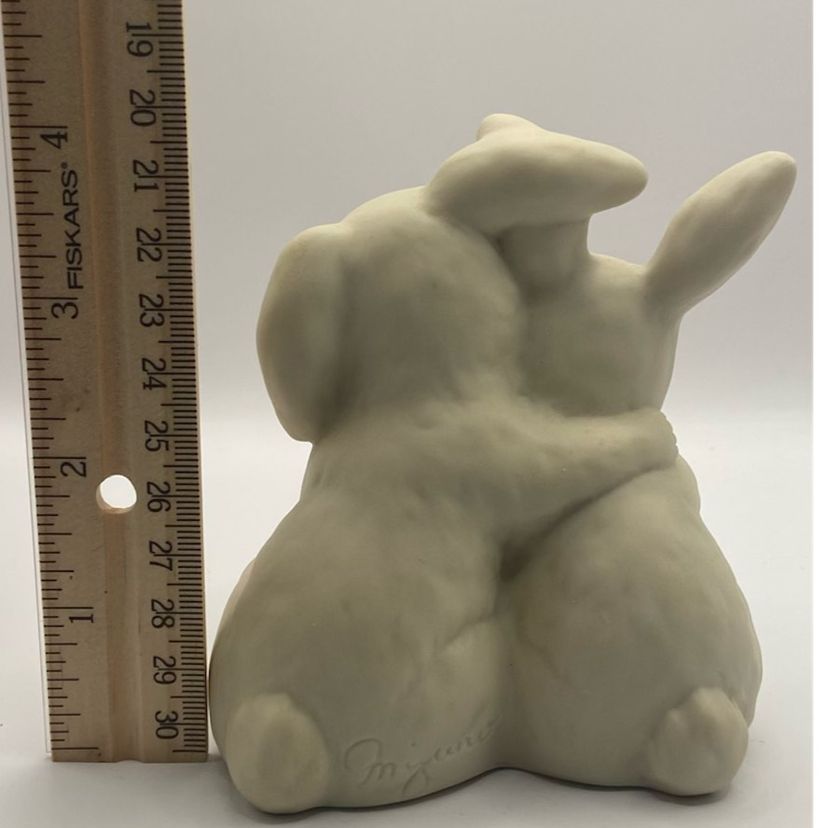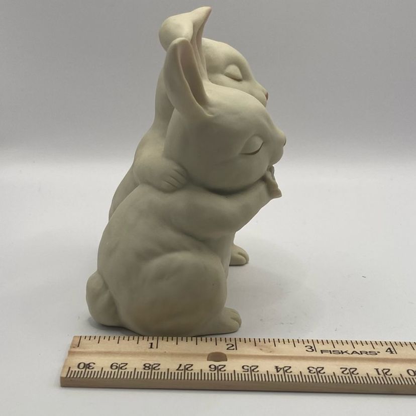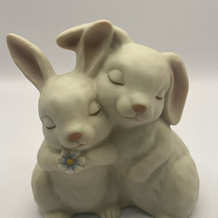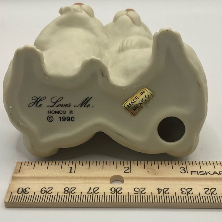 Dated 1990, “He Loves Me” by Homco, stamped by artist. No chips or cracks, these love bunnies are just perfect.