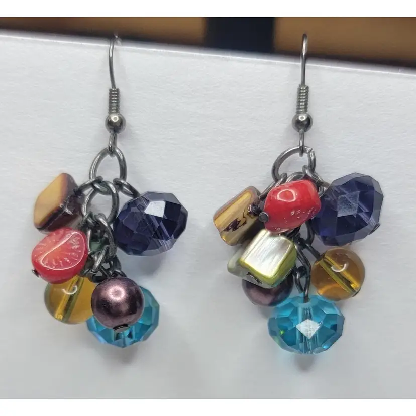 FUN FUN FUN!! Colorful art glass & shell dangle earrings! They are just shy of 2” long from the top of the ear hook. Excellent condition and suitable for all seasons!