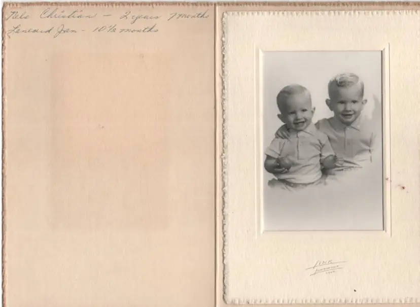 The first one shows him at 10 1/2 months with his brother Niels. The next one has no writing, but is at a later age.