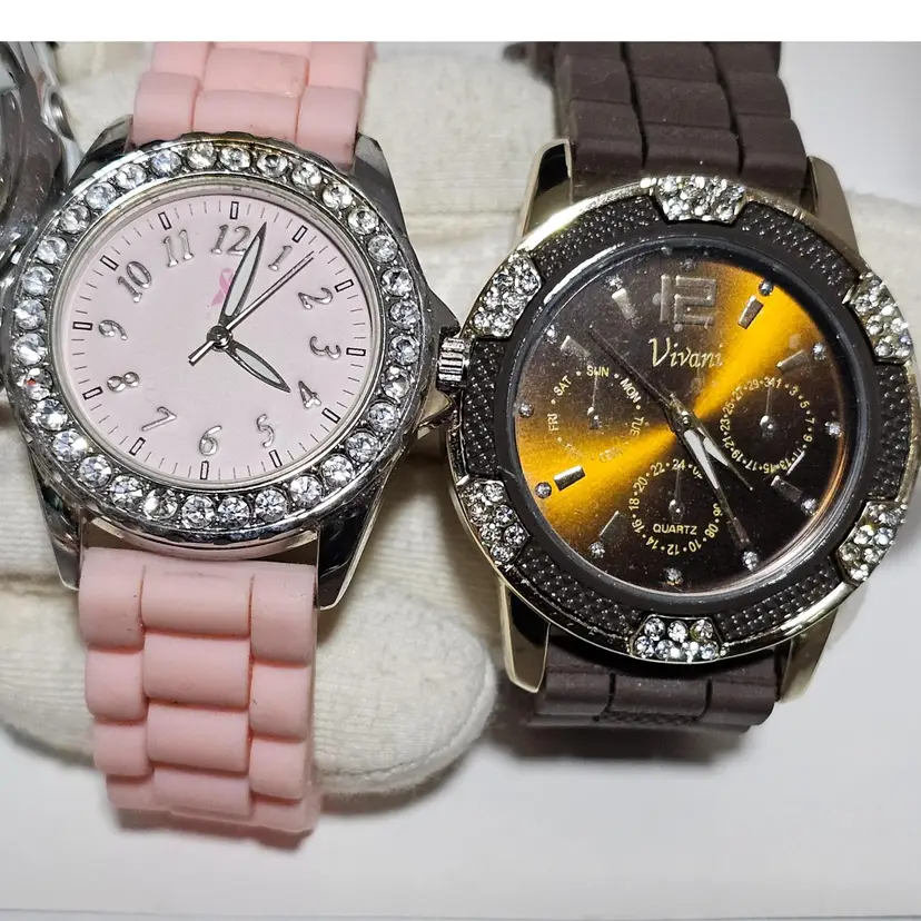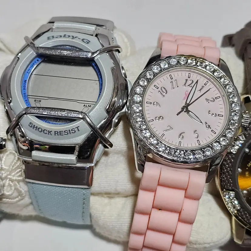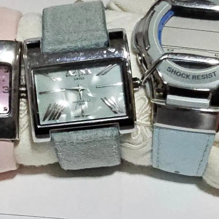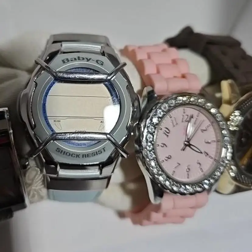 Getting 6 watches in this lot! All need batteries. Cloth or rubber thick band watches. Some name brands Visage, Activa, Baby-G, and Vivani!!! If you have any questions please feel free to contact me in messages!