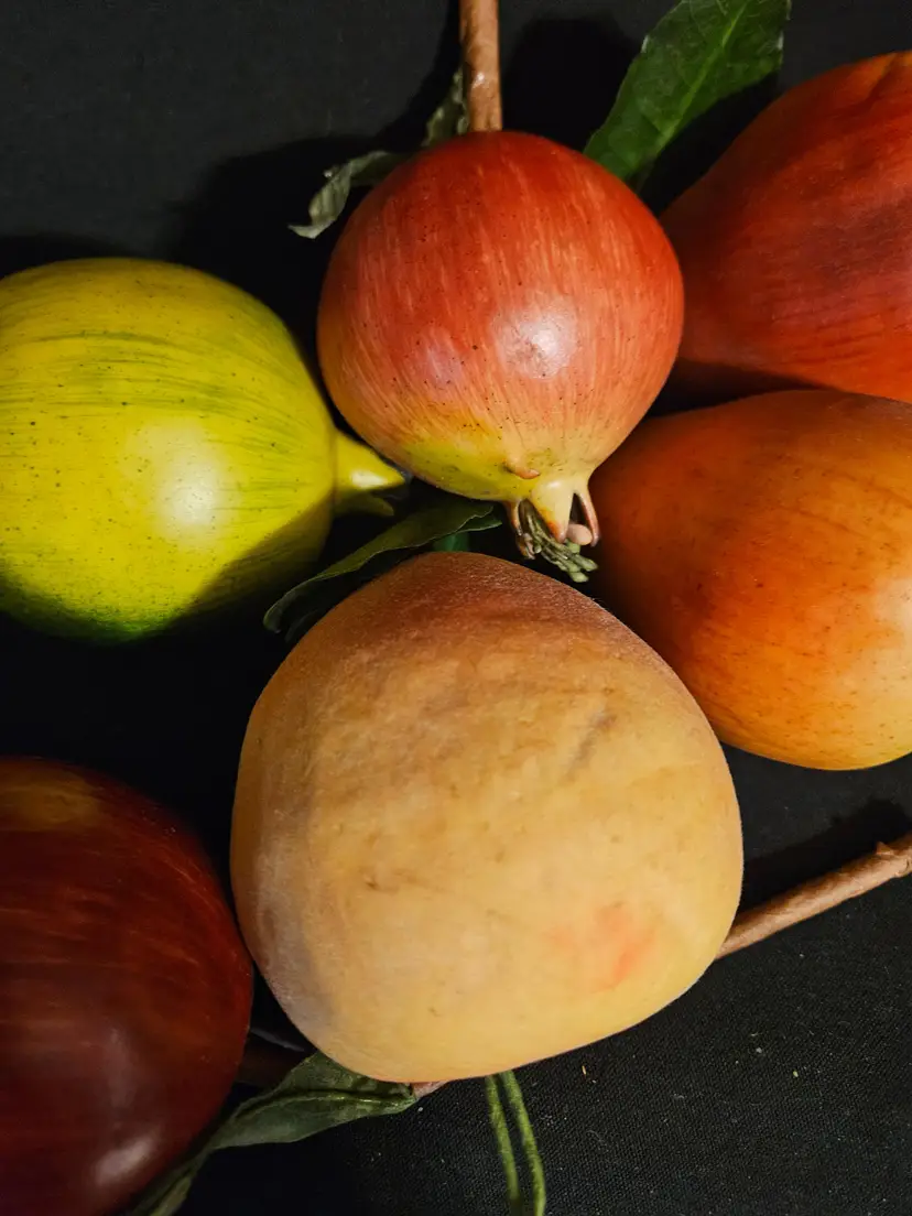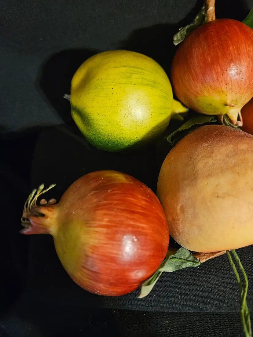 6 papier mâché fruit pieces for your floral arrangement. Good condition - vibrant colors!