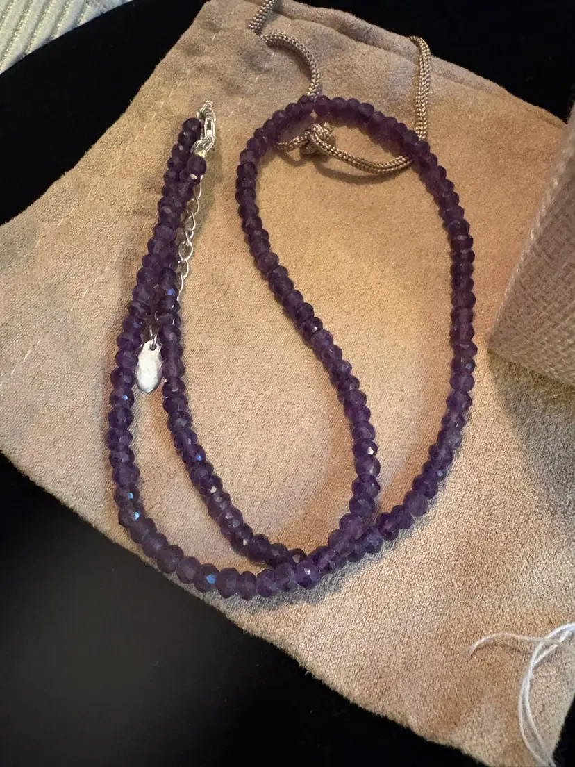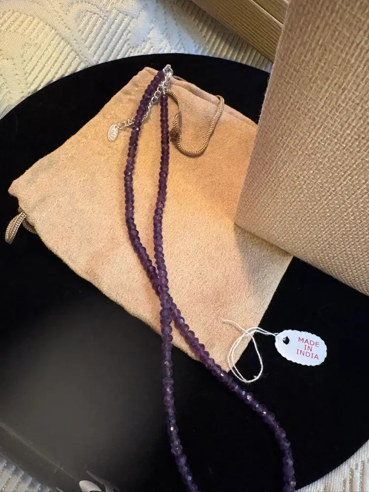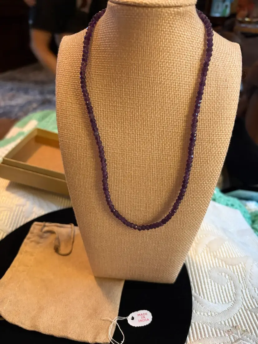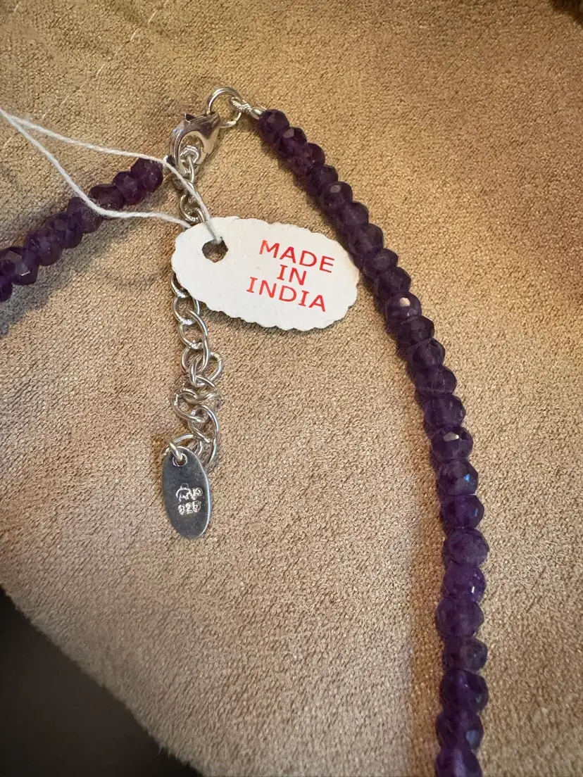 Gorgeous New 60 ct. total weight Amethyst and sterling silver necklace. Artisan gem collection of India. New in box. Great gift option.