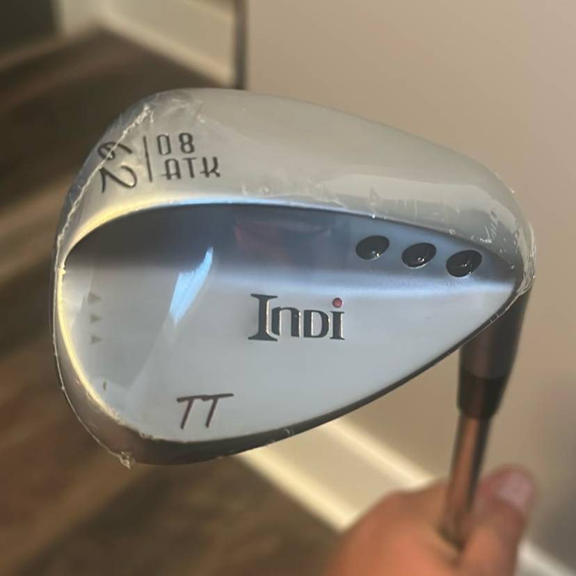 INDI Wedge new in plastic 62 deg 8 deg bounce with upgraded KBS 610 wedge 110 weight reg flex shaft, standard golf pride tour velvet grip.