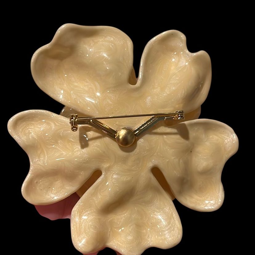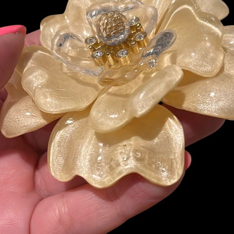 45. St John Stamped Lucite Crystal Camellia Flower Designer Brooch massive big large Statement Runway Vintage Couture RARE!
