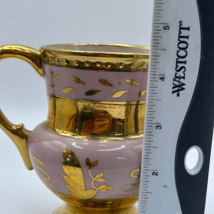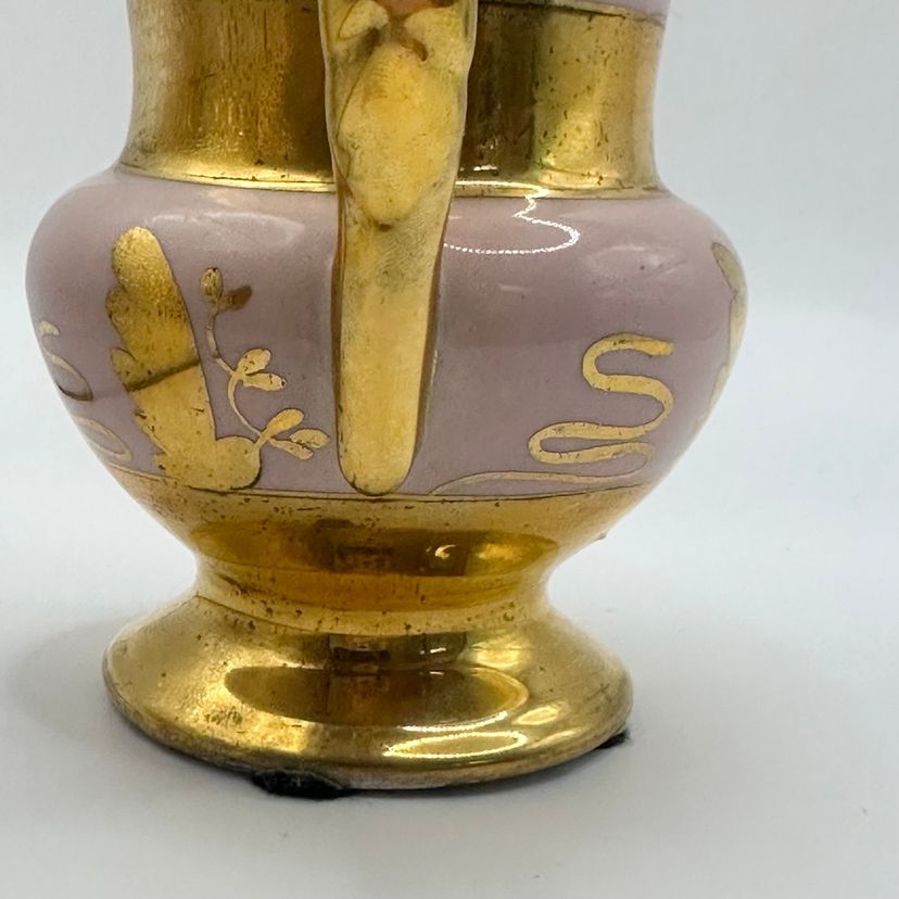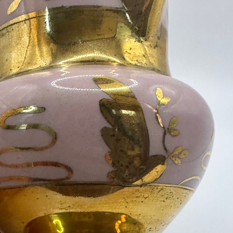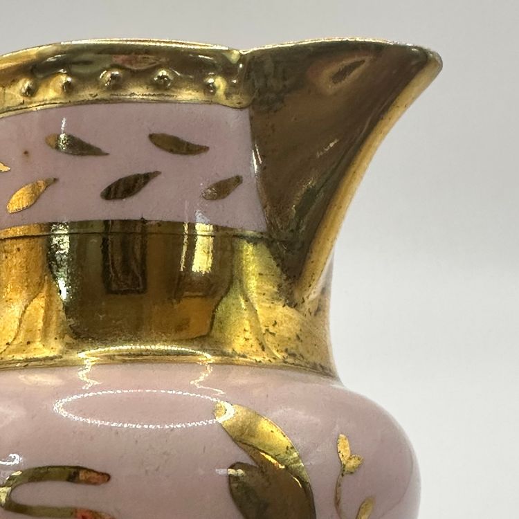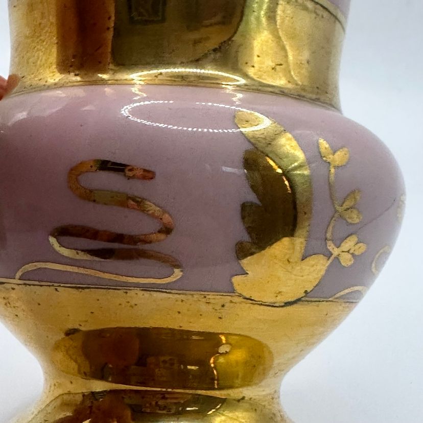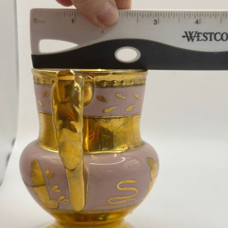 Beautiful pink pitcher, no chips or cracks gold paint has some darker marks, please see pictures