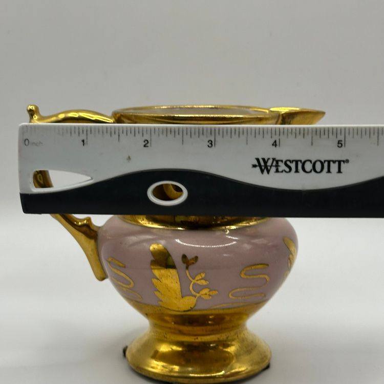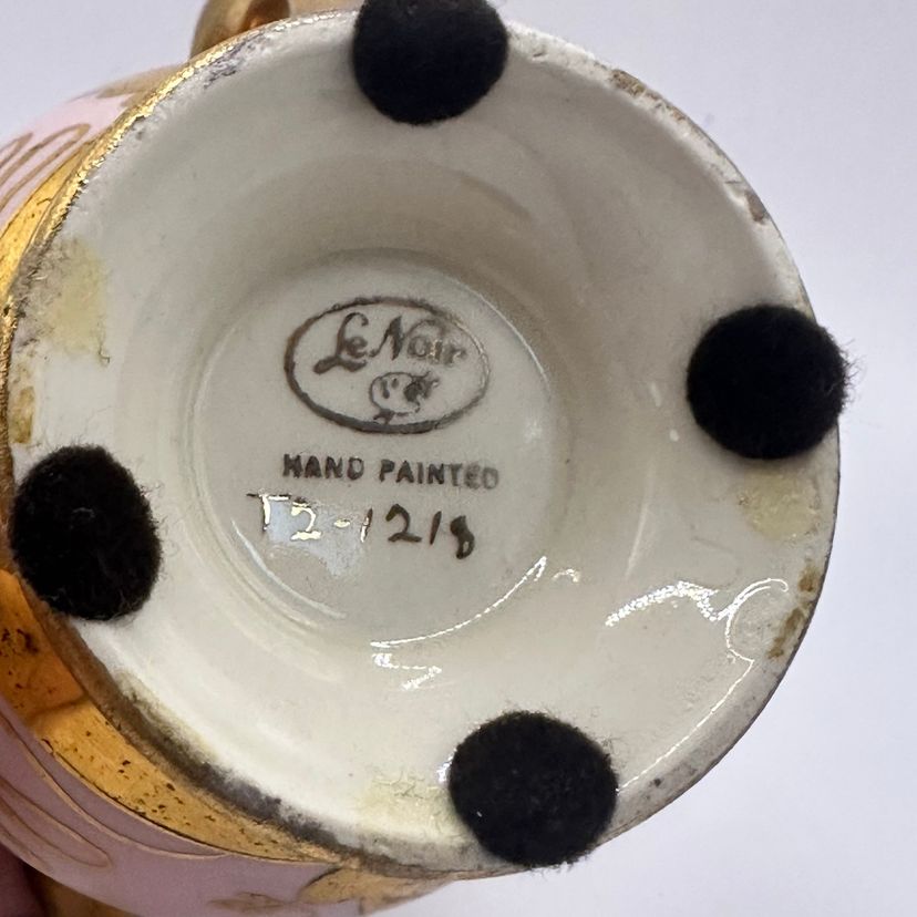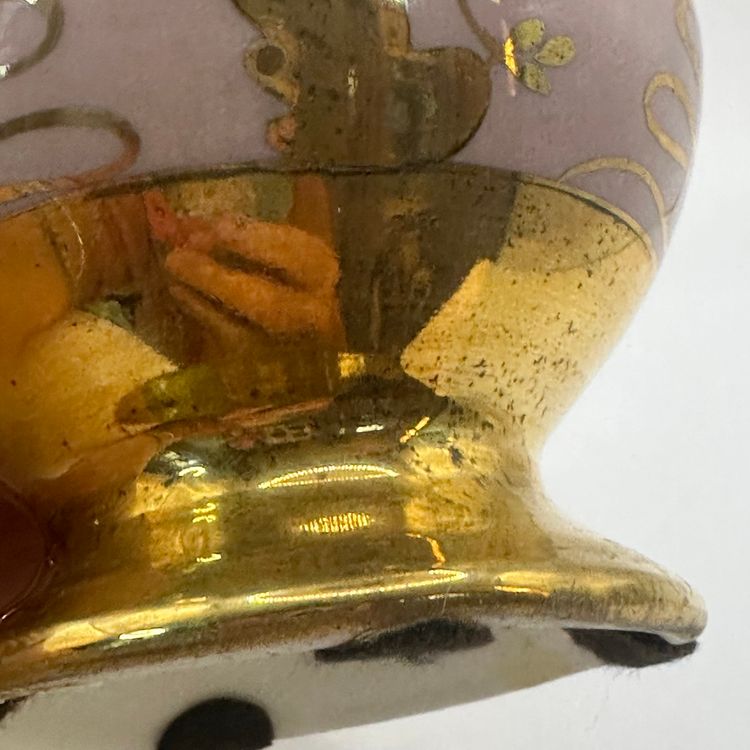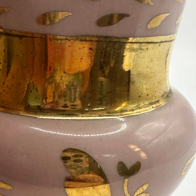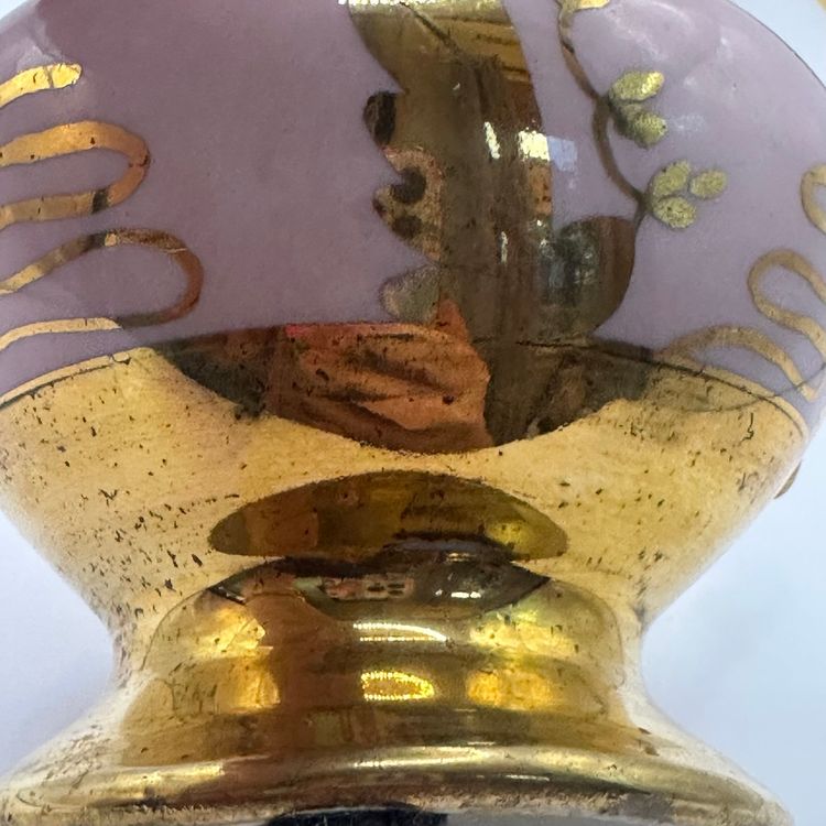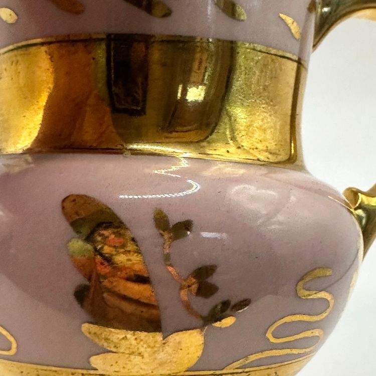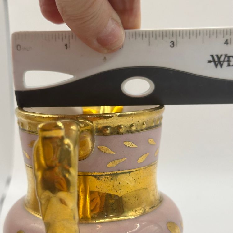 Beautiful pink pitcher, no chips or cracks gold paint has some darker marks, please see pictures