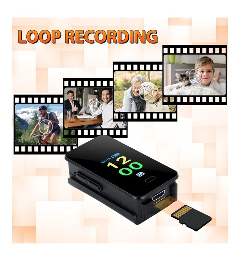 1080P HD Resolution: Captures clear and detailed video, ensuring every detail is visible. Loop Recording: Supports loop recording, automatically overwriting old files to ensure continuous storage availability Recording While Charging: Allows continuous recording even while charging, ideal for long-term monitoring.
