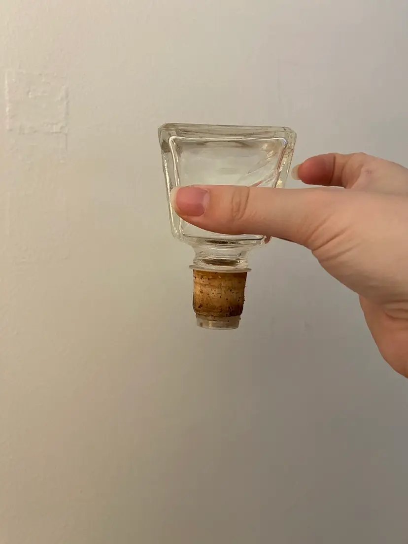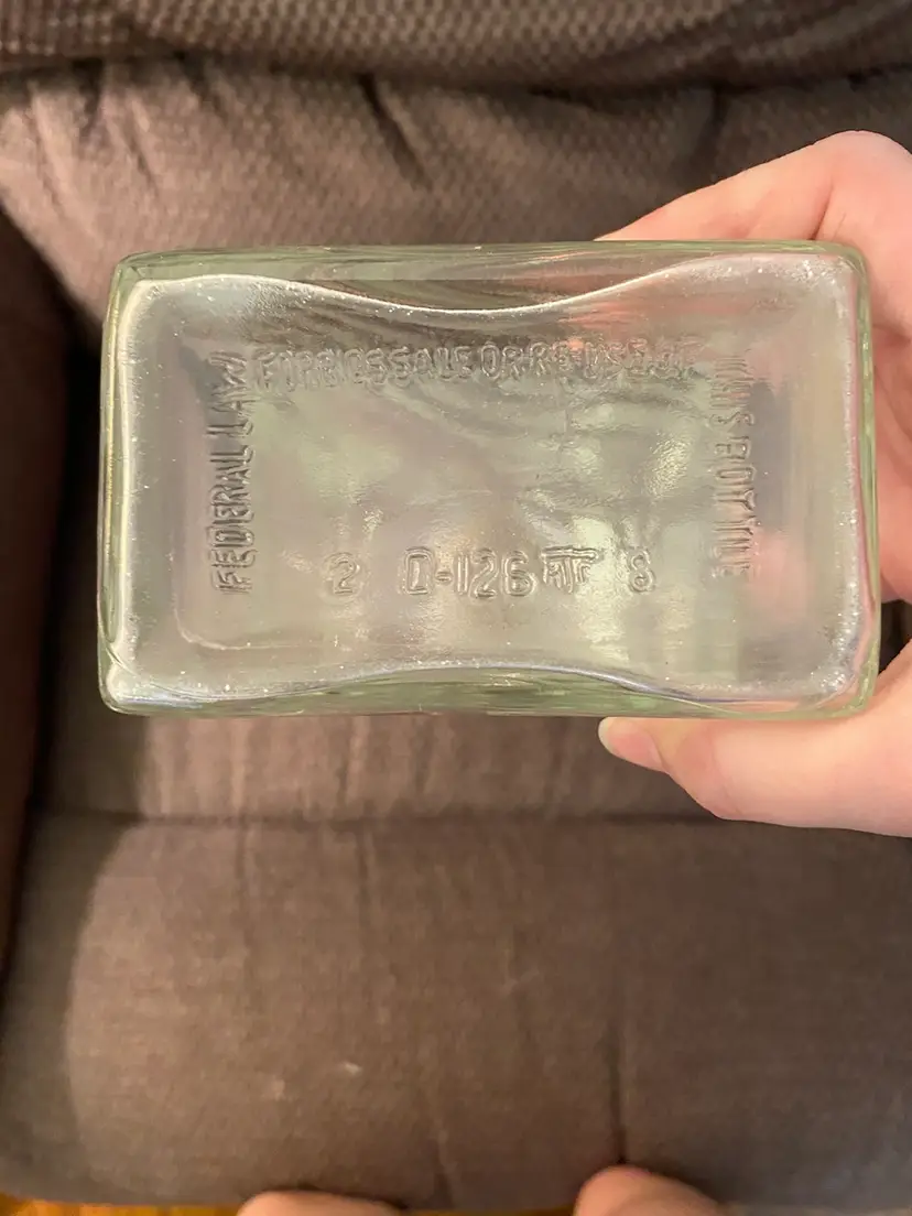 It stands about 11 inches tall, 4 inches long, and 2 1/2 inches wide. There are no chips or cracks. The bottle is marked on the bottom with a Federal law warning.