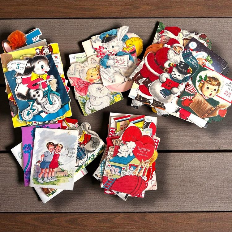 1950s VTG Kitsch Greeting Cards - Christmas Valentines Day & More