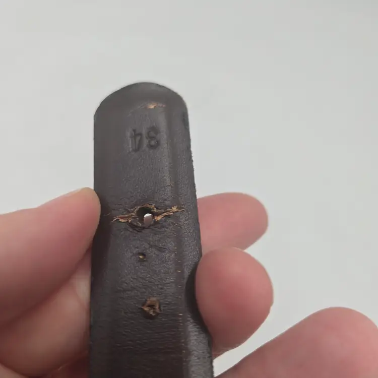 The original owner added 2 more holes. Fits 34-39". In great condition. Some signs of wear from use. Please see pictures for more details.