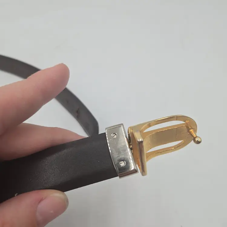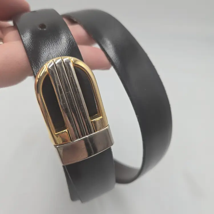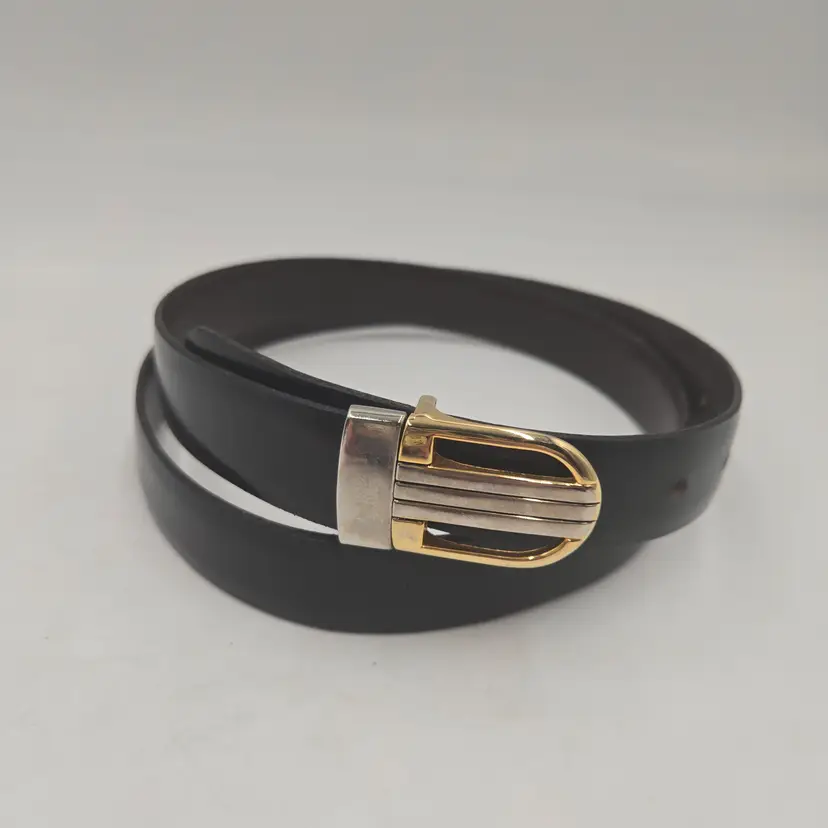 80’s Vintage Mens Gold Tone Buckle Black Brown Leather Reversible Belt Sz 34