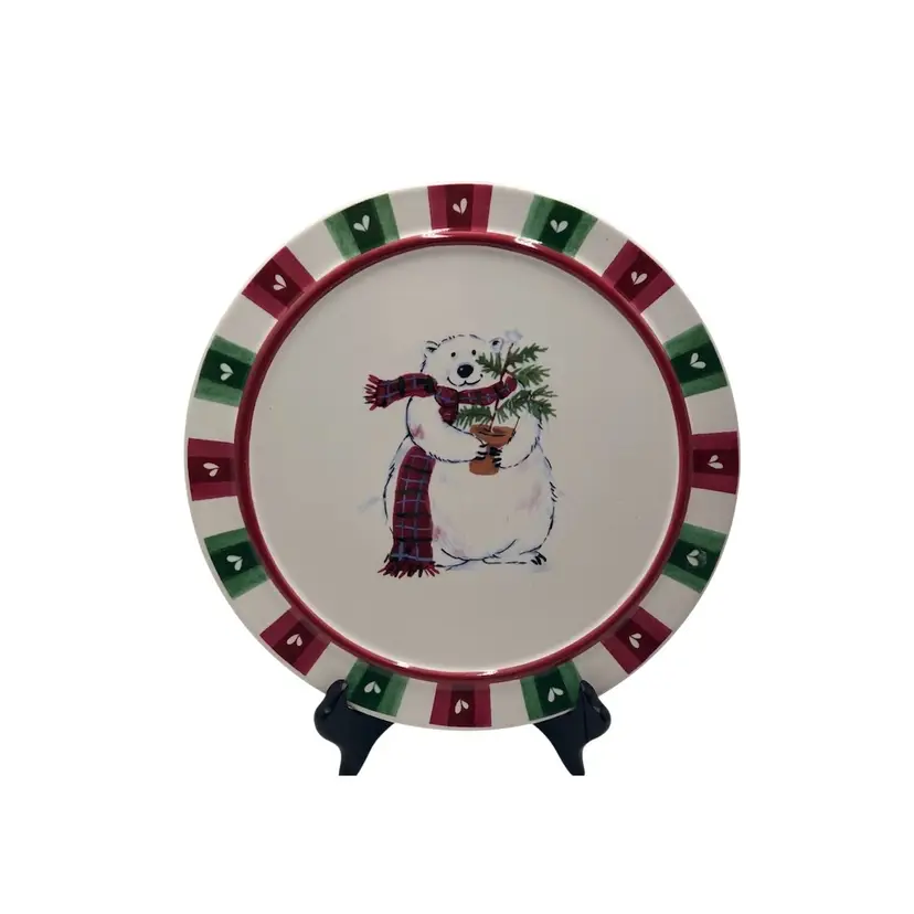 Round Ceramic Polar Bear w/Tree No Chips or Cracks Review Photos for Best Condition Description Sold as Shown