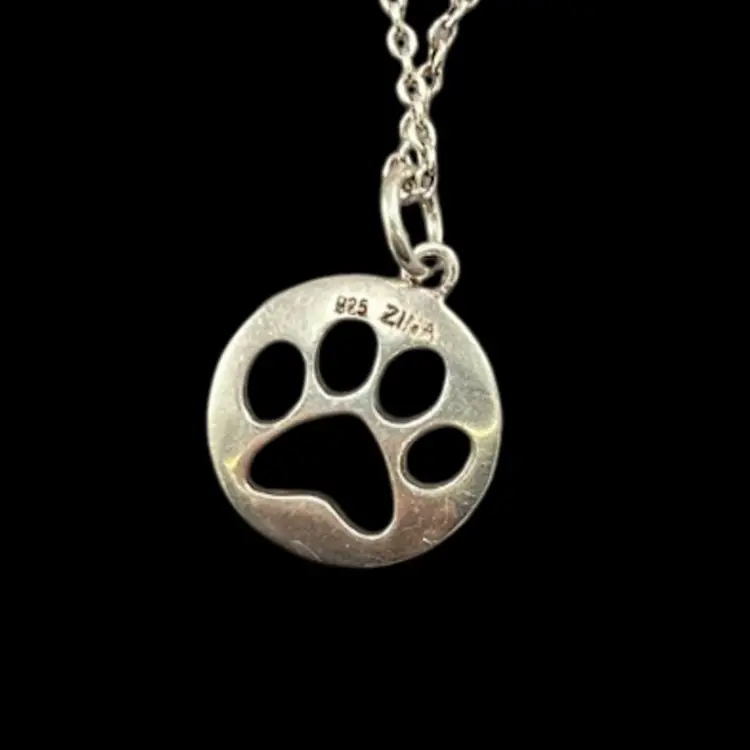 925 Zina Beverly Hills Paw Print Necklace, Sterling Silver Paw Print Charm On Sterling Silver Chain, 925 Dog Print Pendant, Dog Paw Charm