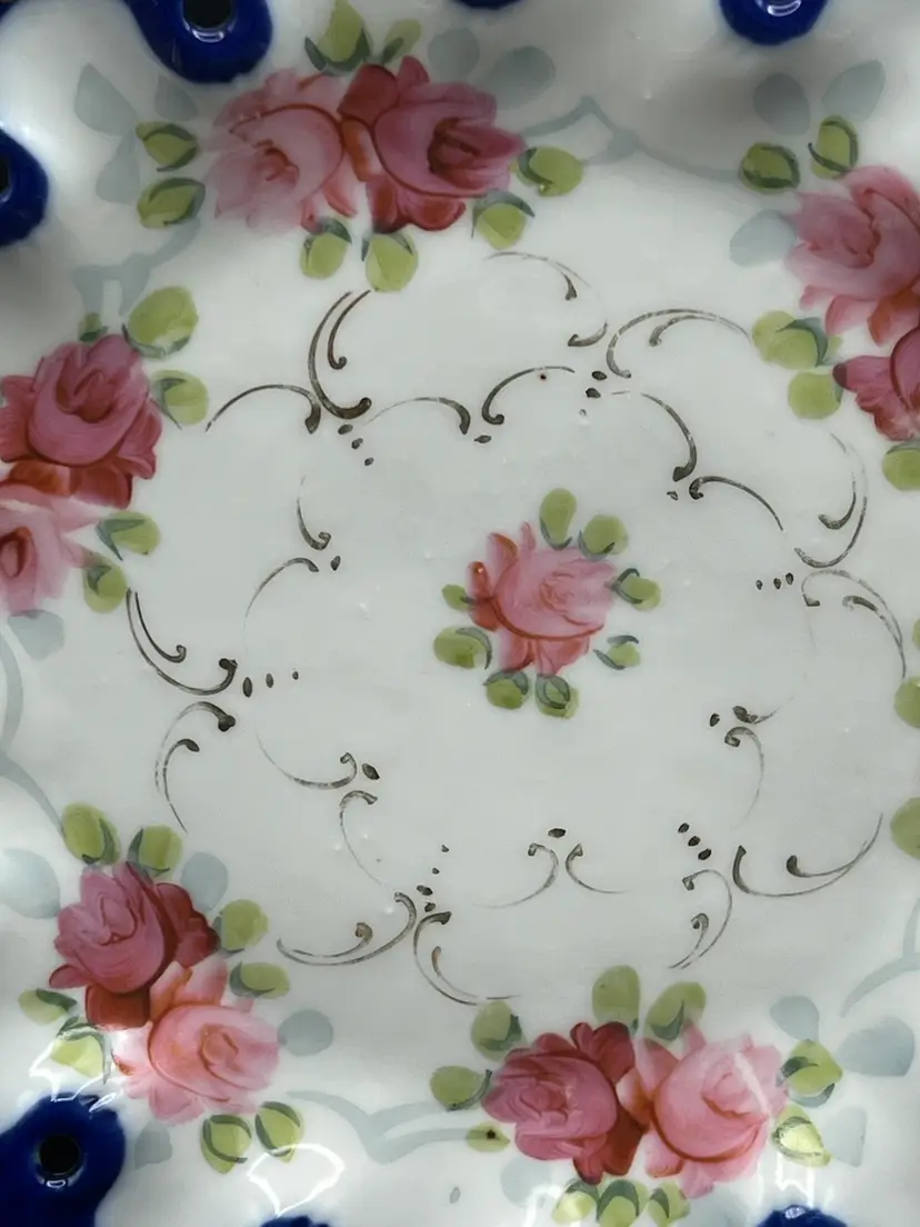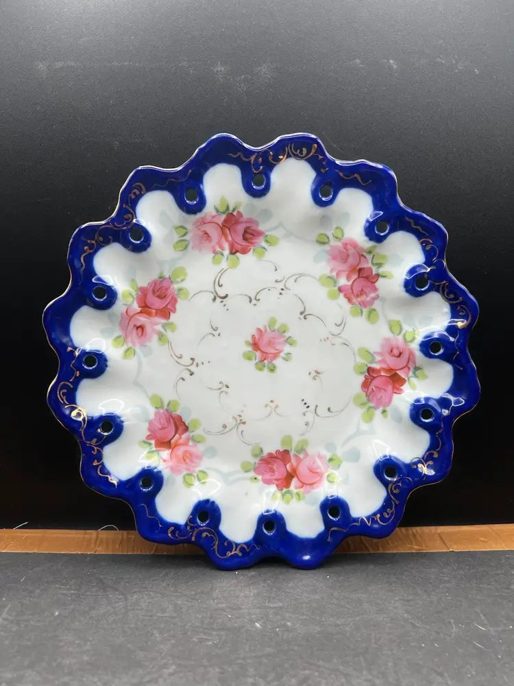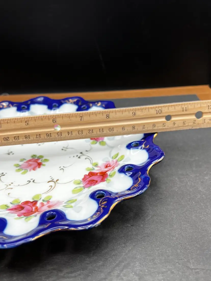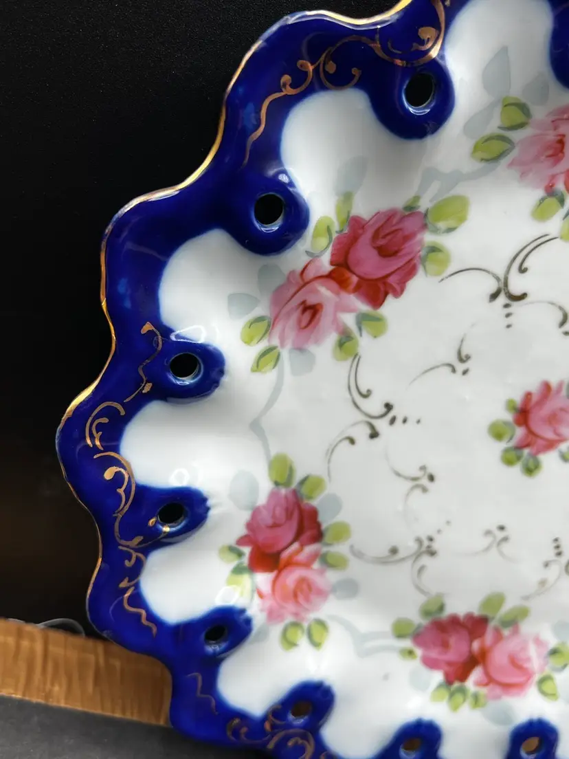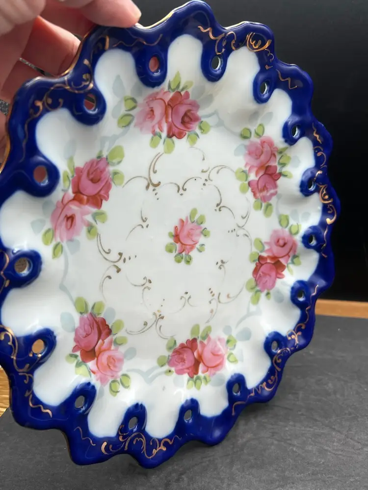 Beautiful Vintage Nippon 9 1/2” Plate Handpainted Roses Cobalt Blue With Gold Detailing 9 1/2” in diameter In very good condition, no chips, cracks or crazing.
