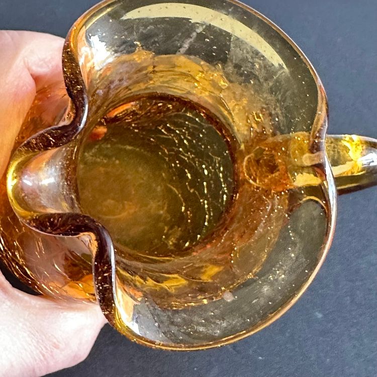 Applied handle, hand blown, dimples on both side, 5x2.5x4, no chips or cracks 1.1lb
