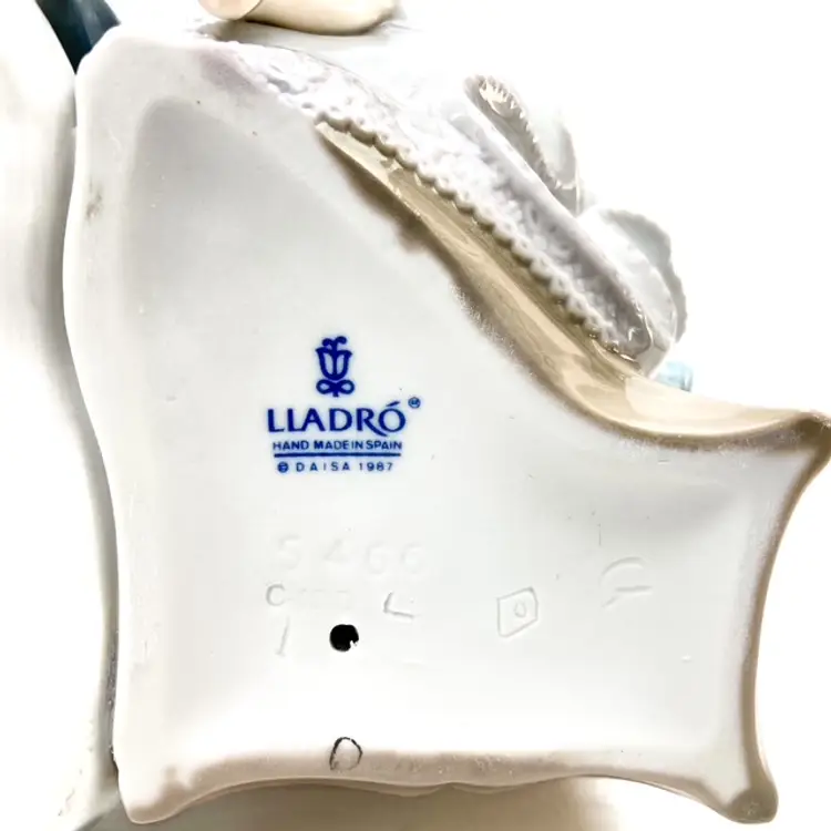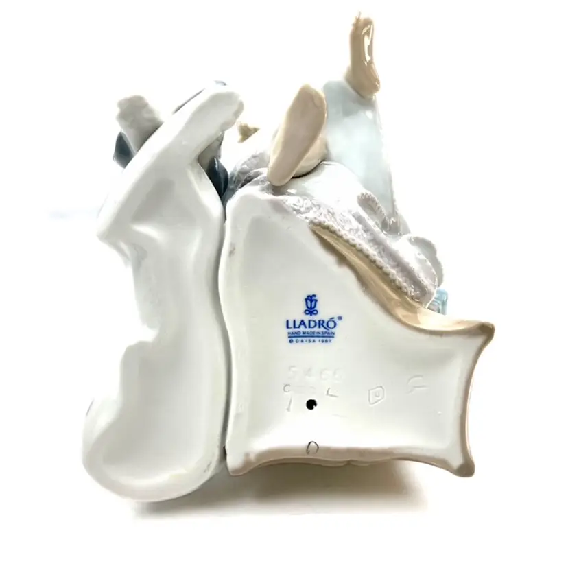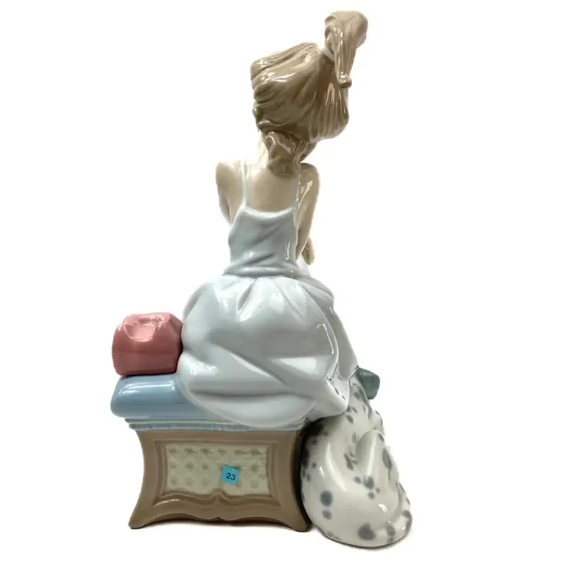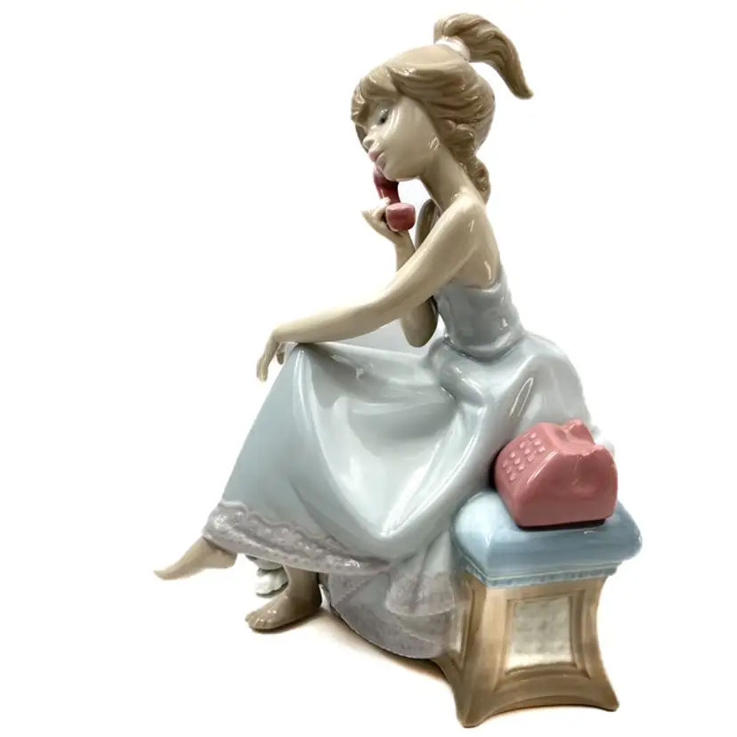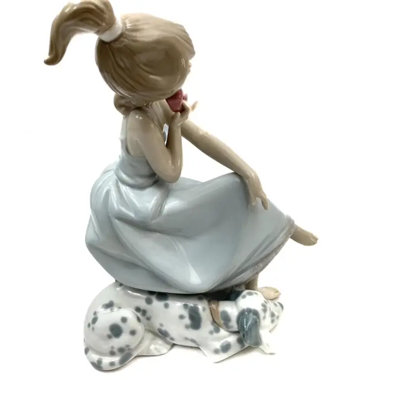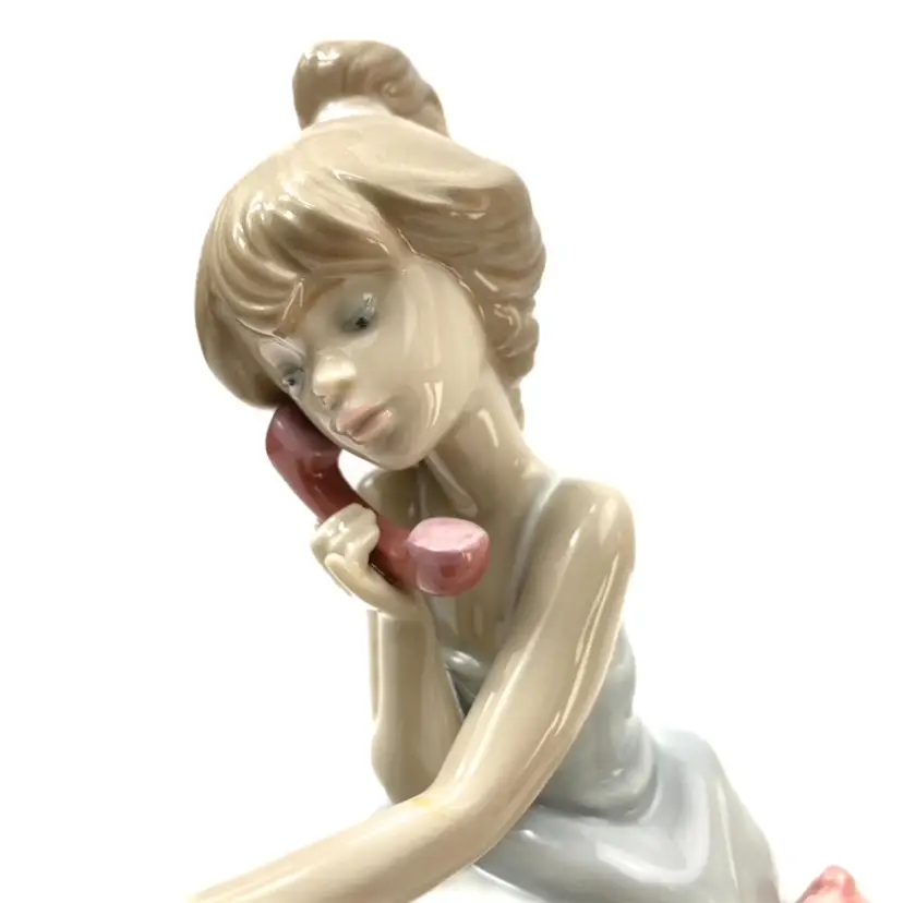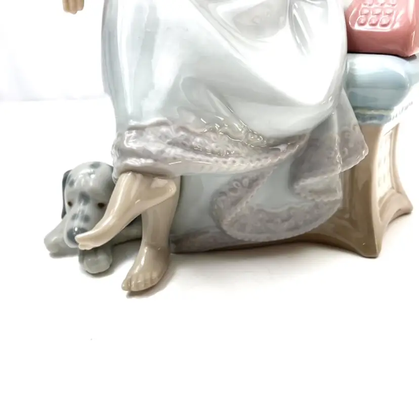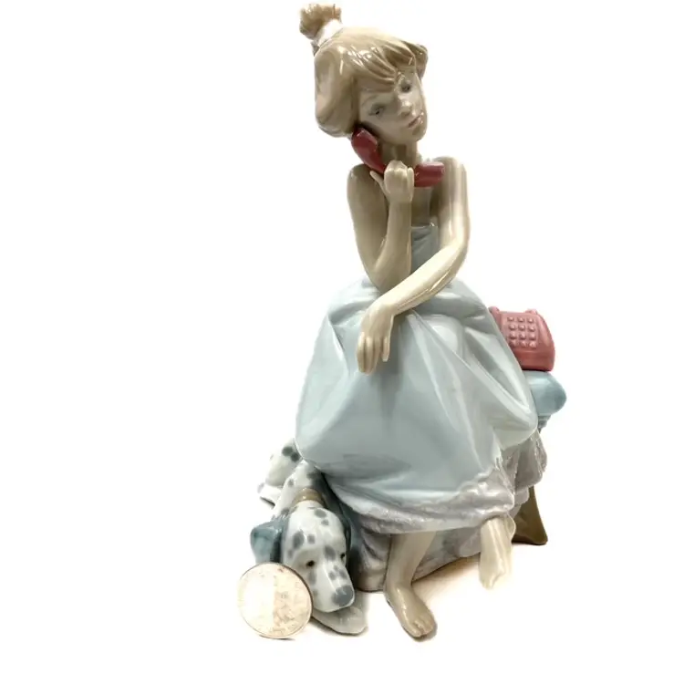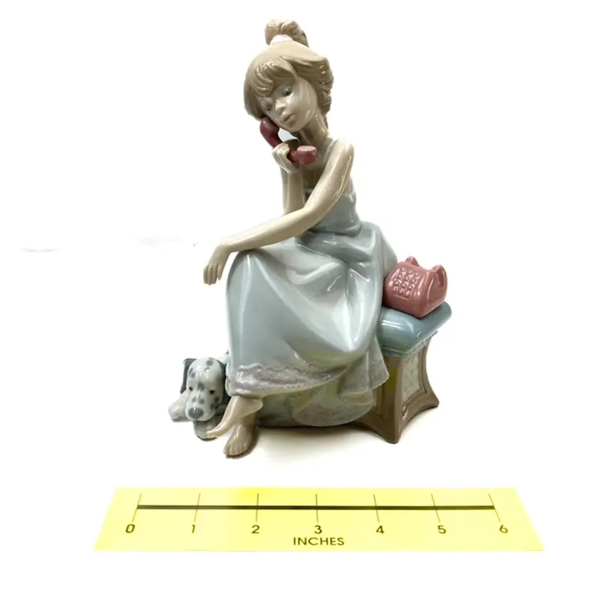 Girl on phone with her Dog to keep her company, this figurine is approximately 8.5" tall, 4.5" long and 5.5" wide. In excellent condition- no chips or cracks noted. 1987 Lladro figurine by sculptor Jose Puche. Figure retired in 2000. Lladro #5466. Original box not included. mar1529