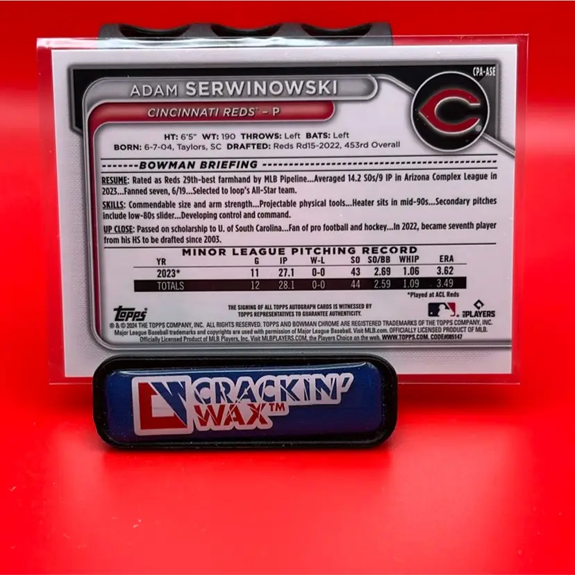 Adam Serwinowski 2024 Bowman Chrome 1st Bowman Prospect Auto Cincinnati Reds
