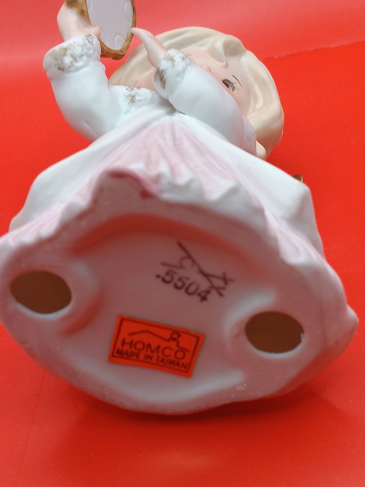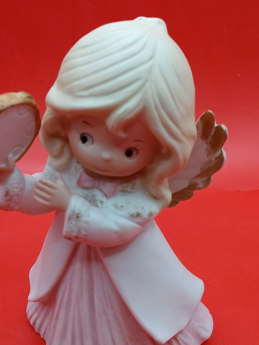This sweet Christmas Angel is a lovely vintage addition to your holiday collection! With her pink dress, tambourine, and wings tipped in gold - she is just so lovely.