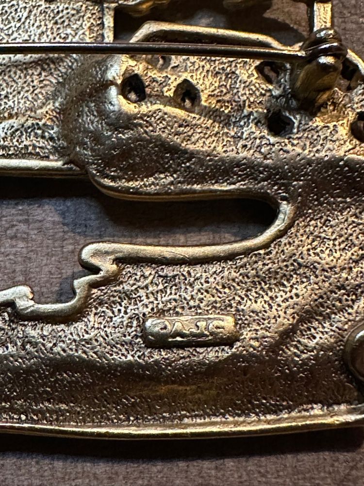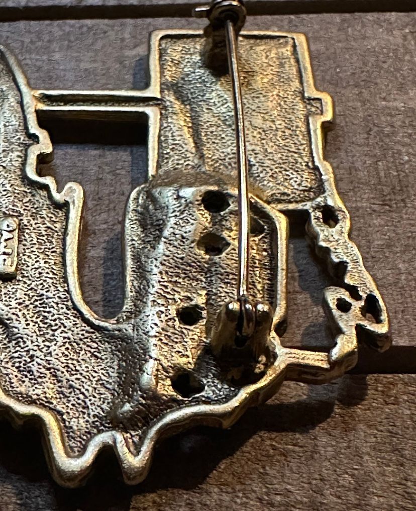 Measurements are appropriate: Length: 2&1/4” Width: 1.5” Pin is bent slightly but doesn’t affect it’s functionality