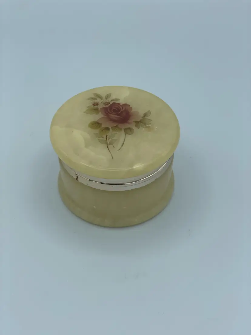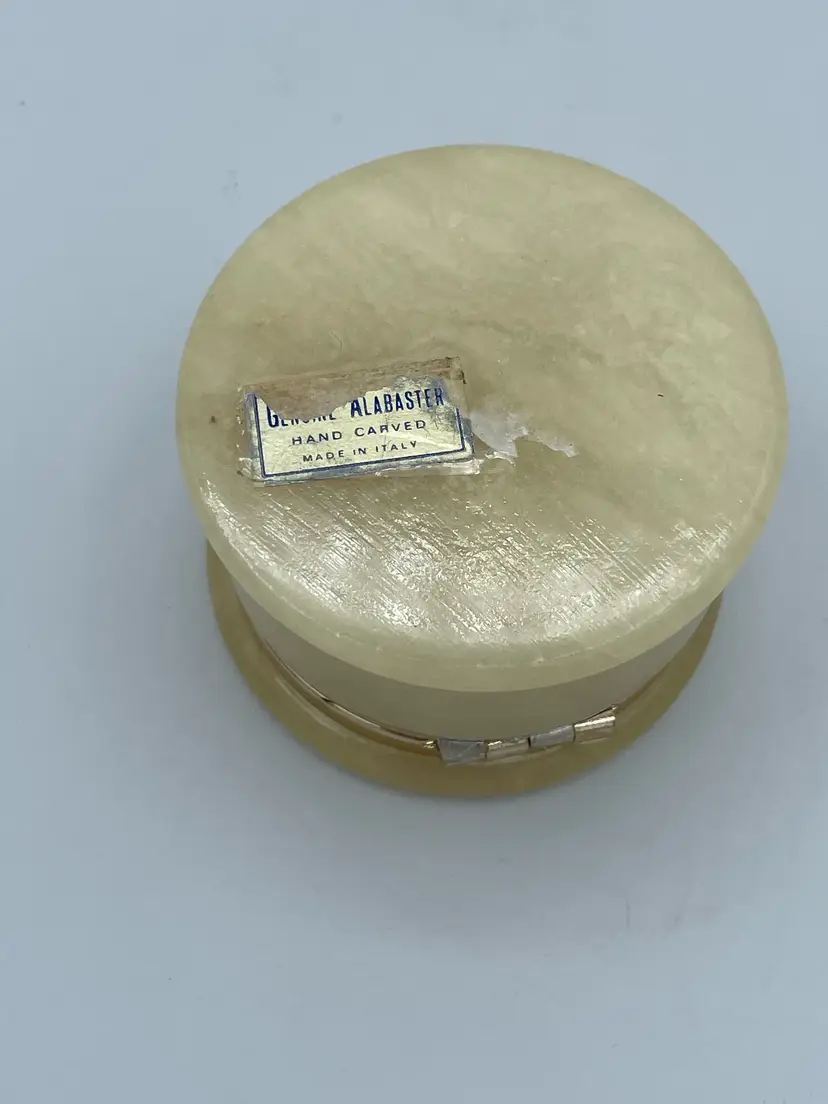 Alabaster Trinket Box With Flowers. Hinged Box. Hand Carved. Stamped Made In Italy. Overall Good Vintage Condition.