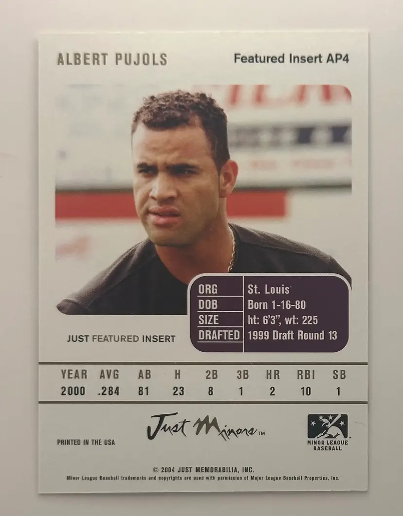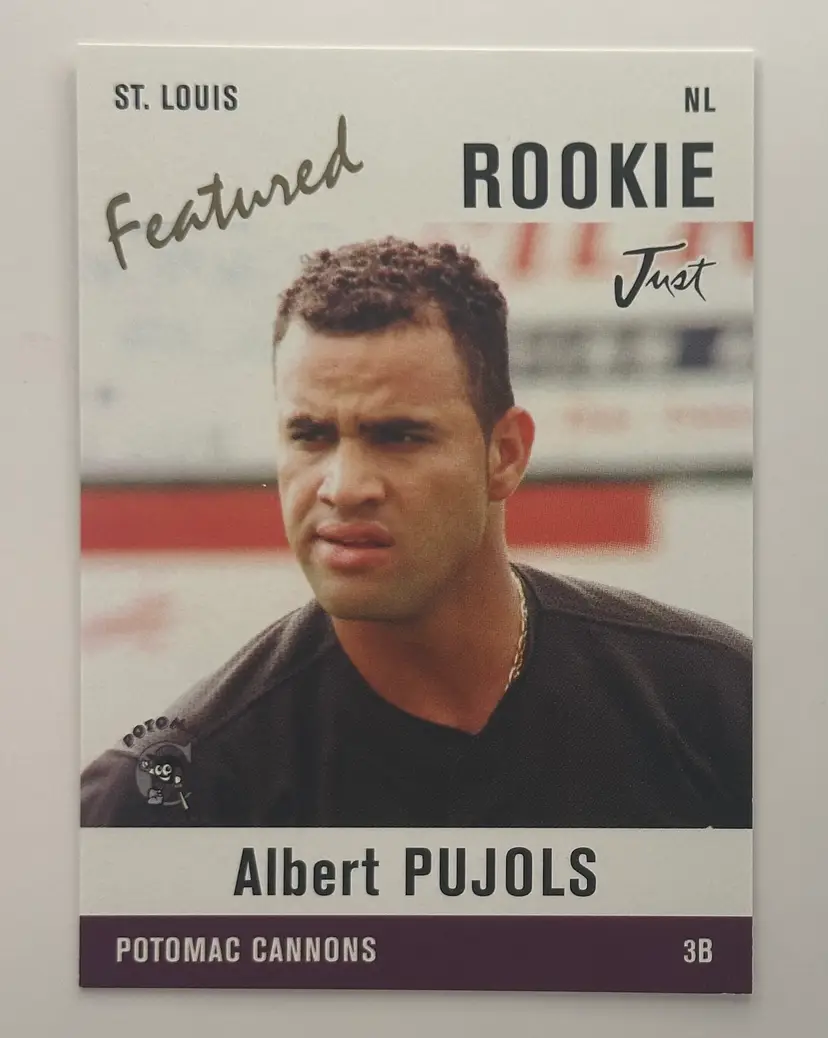 Snag this Albert Pujols rookie card from Just Minors, highlighting his early days with the Potomac Cannons. A must-have for any Pujols fan!