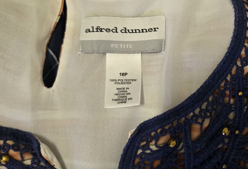 Alfred Dunner Women's Embellished Striped 3/4 Sleeve Tunic Blouse Size 16P