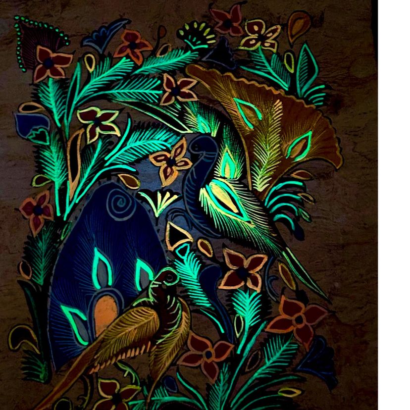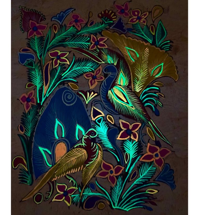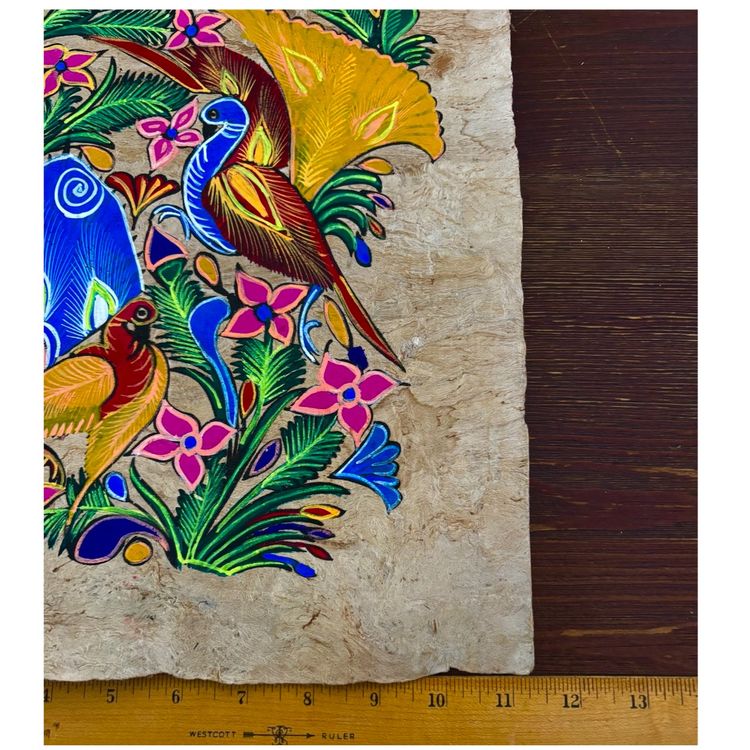 Brought straight from Mexico 5 days ago! Amate bark Mexico folk art hand painting Amate paper is handmade from the bark of trees in Mexico Luke the mulberry or fig! This type of bark paper has been made in Mexico for centuries and are usually created by indigenous Nahua and Otomi artisans from the states of Guerrero and Puebla Mexico These paintings are characterized by their intricate details and vibrant colors which make them great collectibles and displayed wall decor!