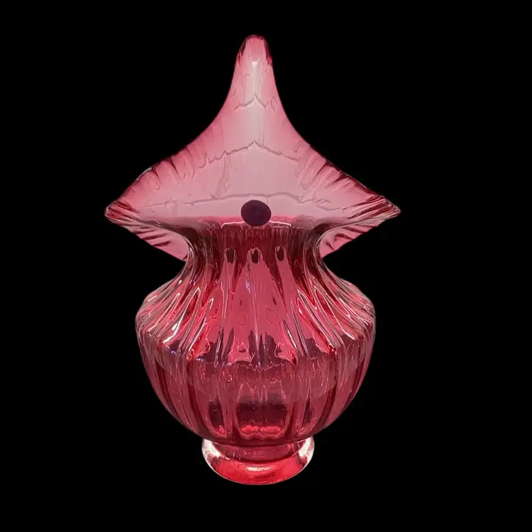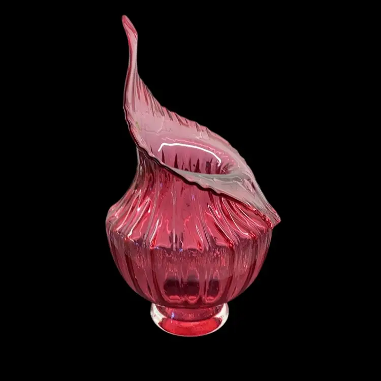 Amazing One Of A Kind Cranberry Jack In The Pulpit Vase Handmade By Angelo Rossi Glass 12.75 Inches Tall. No Chips Or Cracks