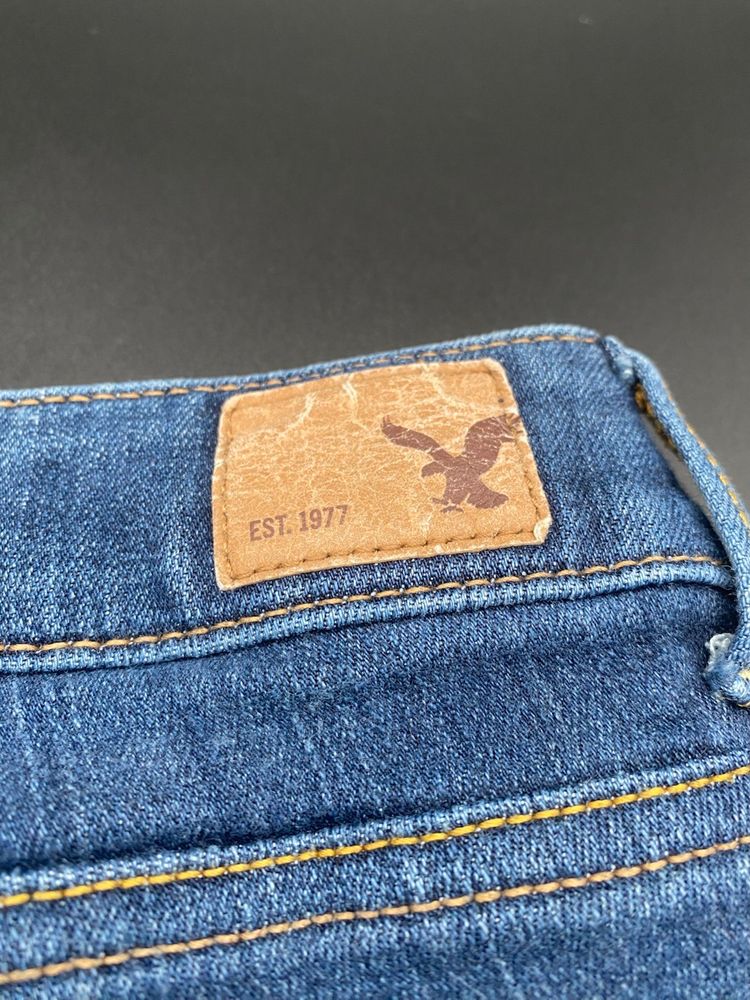 You are purchasing one pair of Women's Size 2 Super Stretch Fit Blue Denim Jean Shorts by American Eagle Outfitters from 2014. These Shorts are in great condition with no holes or staining.