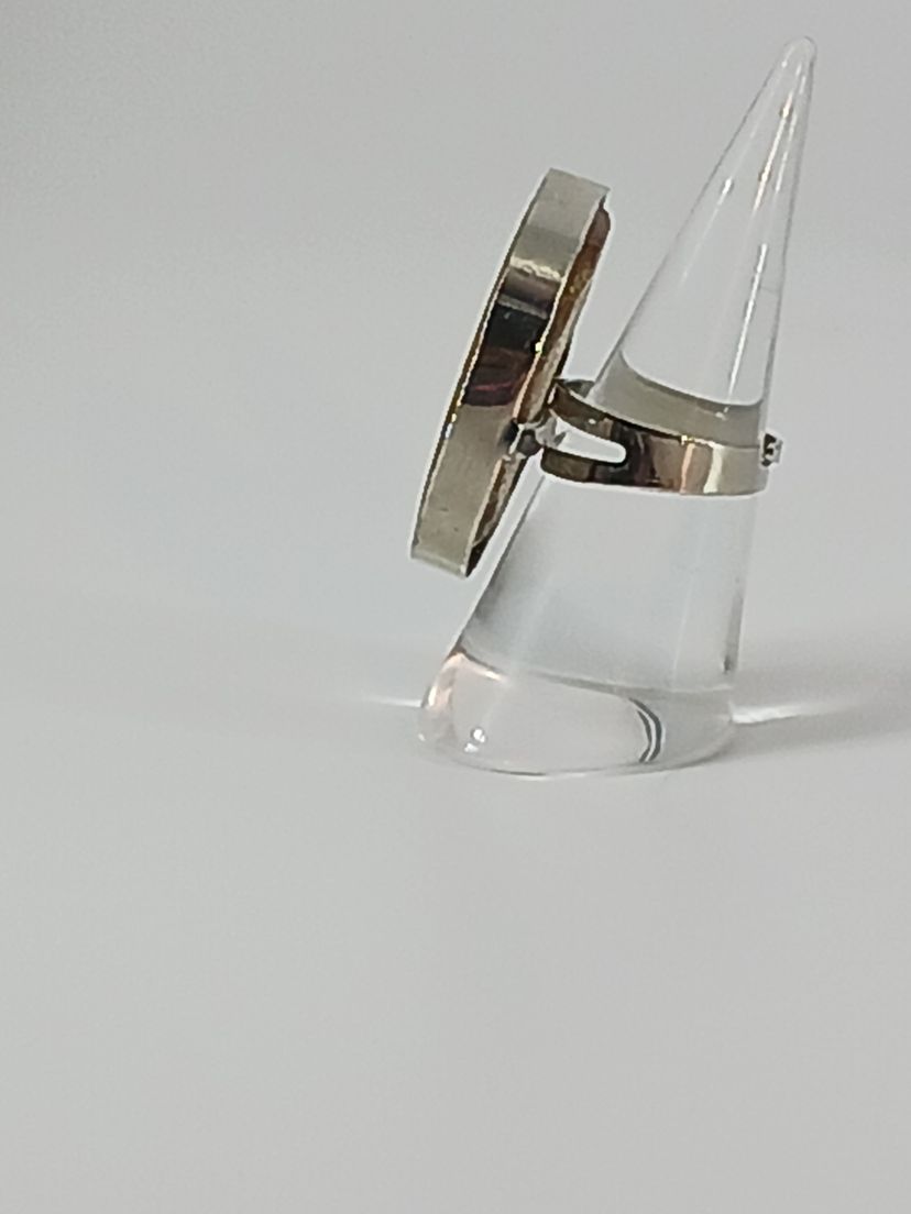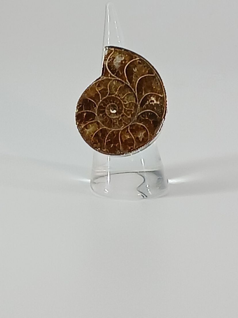 1 3/16 x 1 5/16 x ¼ inch Ammonite Fossil has been mounted into a silver plated adjustable ring setting.