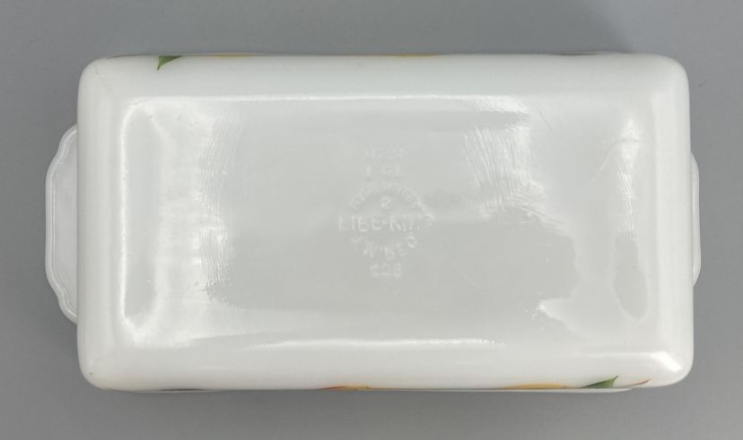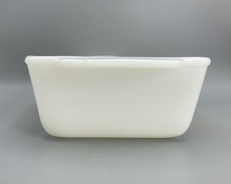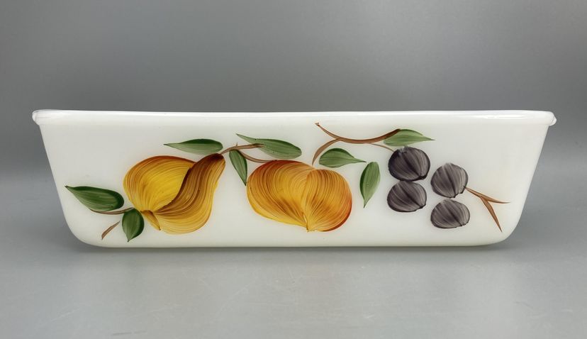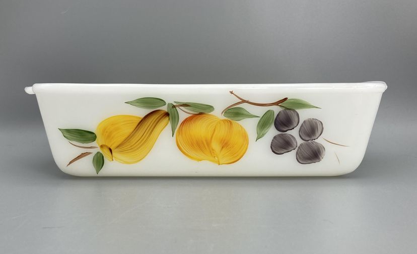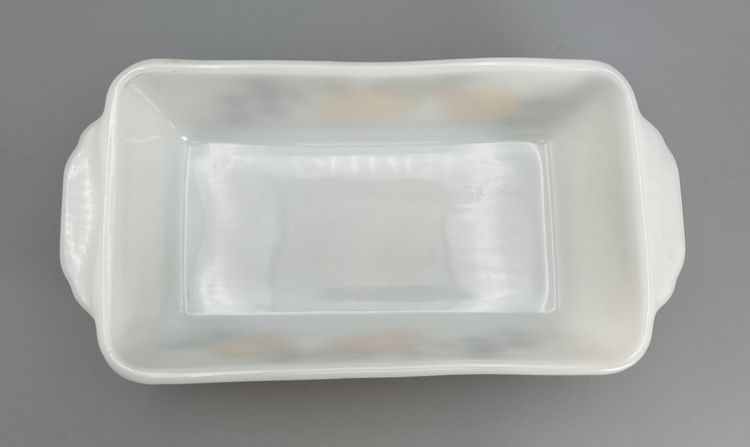 This baking dish is in good condition. It measures approximately 10 1/2" long x 5 1/4" wide x 2 1/2" tall.