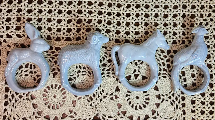 This charming set of Anthropologie Flocks & Herds napkin rings is in excellent, used condition, with no appreciable chips, scratches or cracks. Measurements are depicted in the pictures of the item or listed in the description of the item. Please review the photos, as they are part of the item description. Photos will always reveal noticeable defects, as will my description. Any white “blemishes” that are not pointed out in this section are from the lighting that I use for my photos. If you need clarification, please reach out to me.