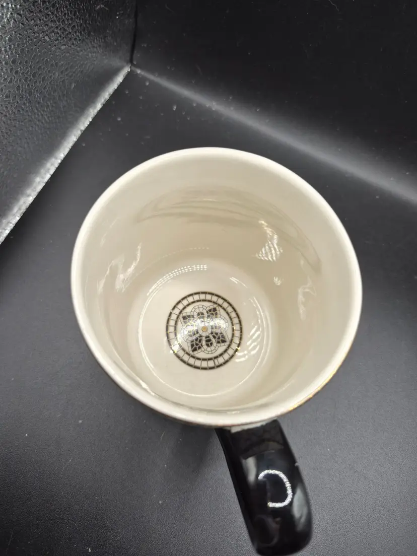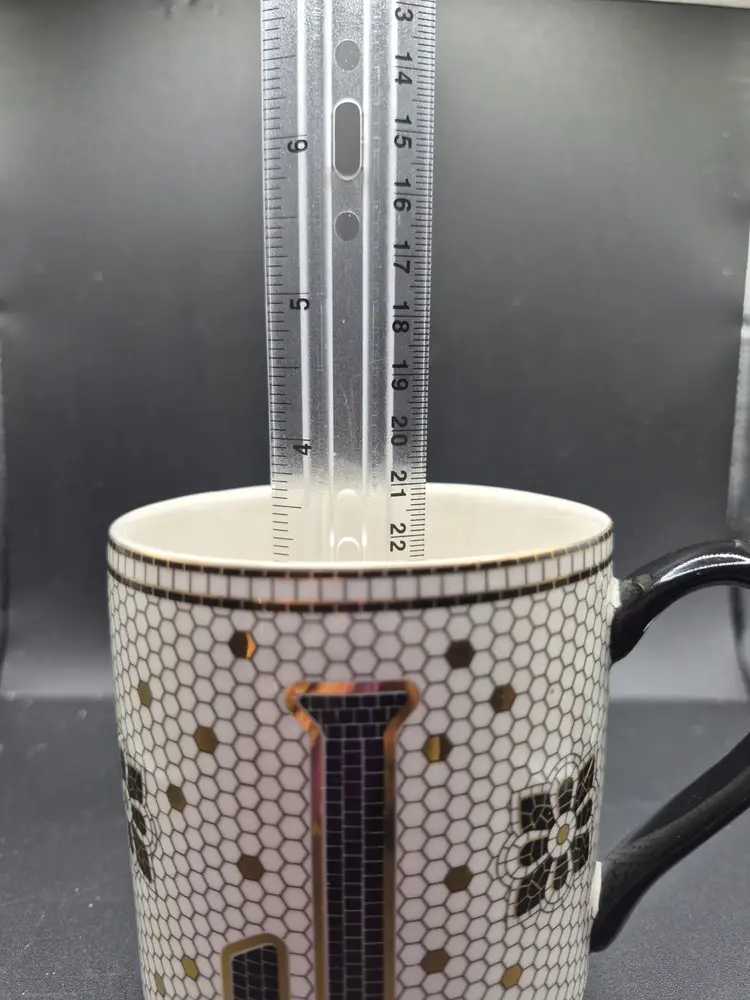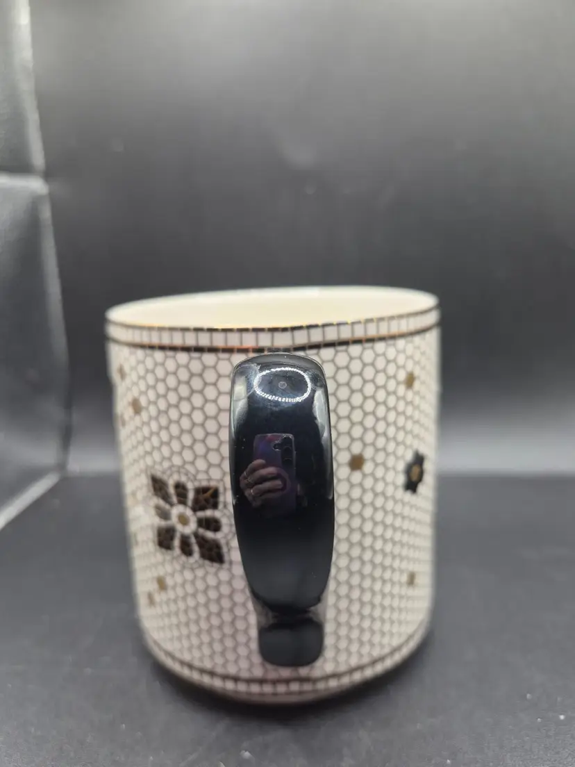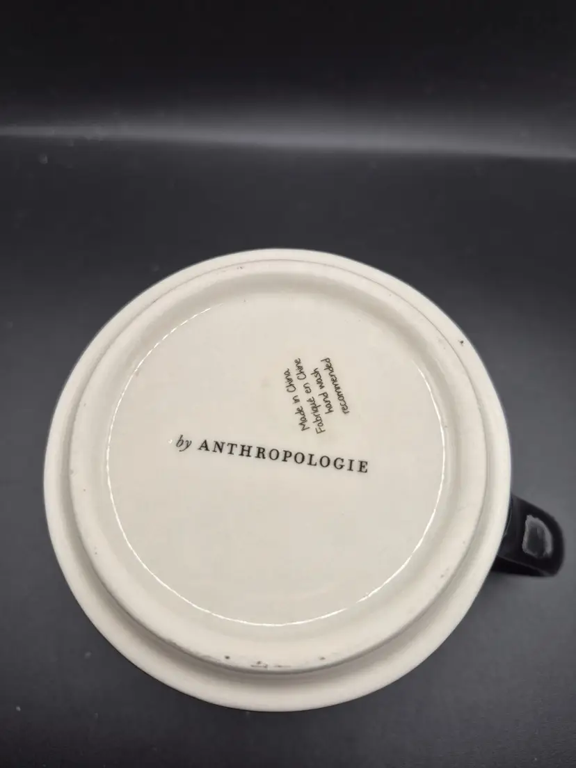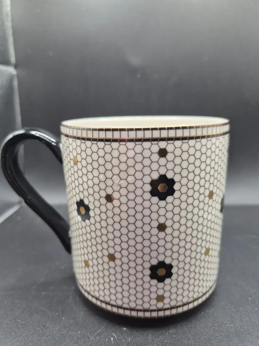 This enchanting mug from Anthropologie tells a story of elegance and personalization. Featuring a letter "J" amidst a honeycomb floral design, it adds a touch of charm to your coffee or tea rituals. The sturdy black handle and intricate details make it a delightful piece for your collection.