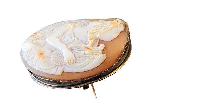 Antique 10kt Left Facing Harp Cameo Brooch (A2930)