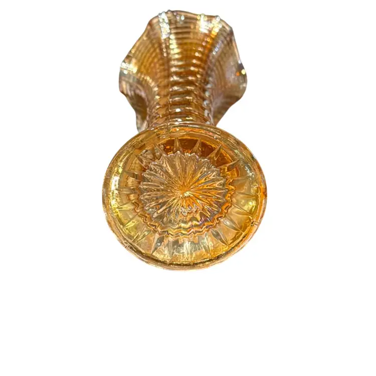 Antique 1910 Edwardian Imperial Glass Carnival Marigold Optic Swung Ripple Vase - 14”