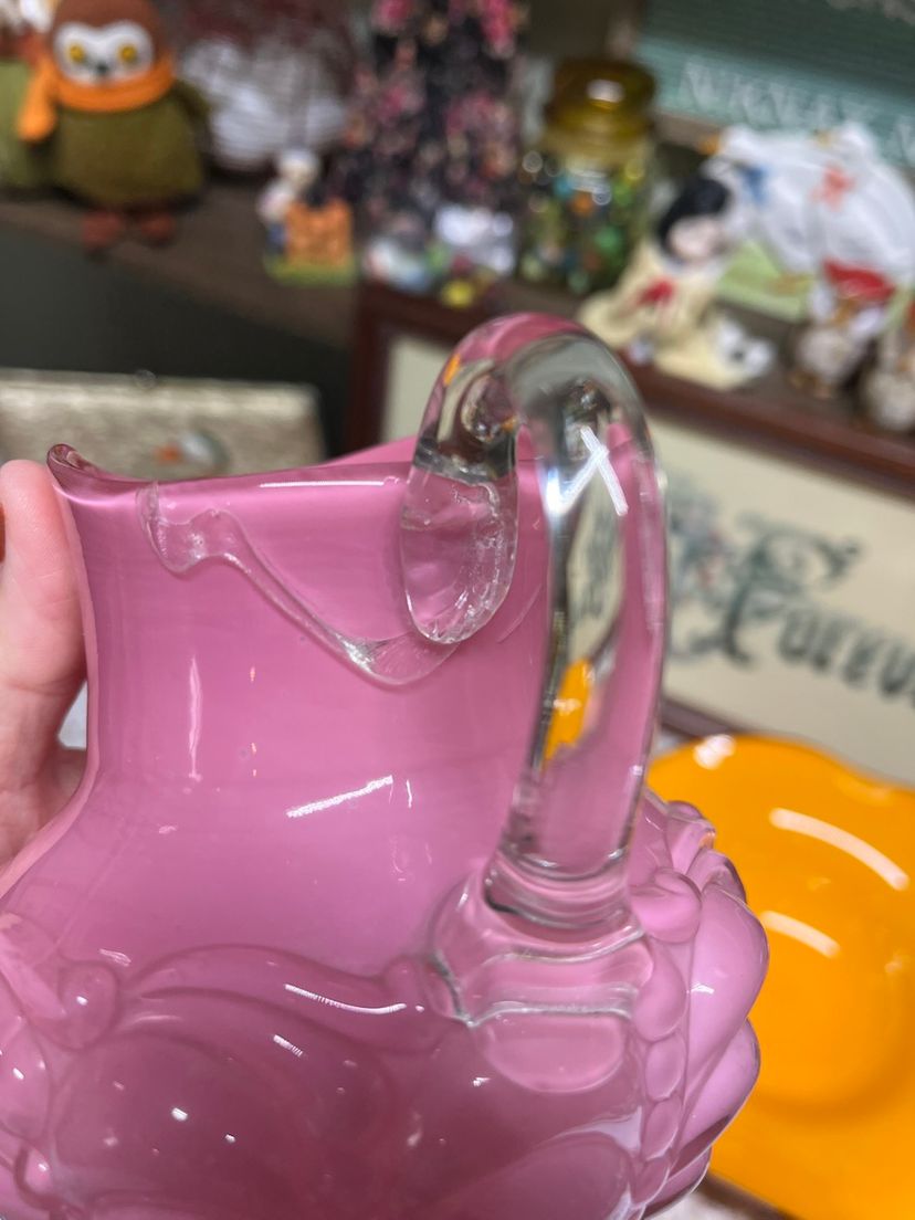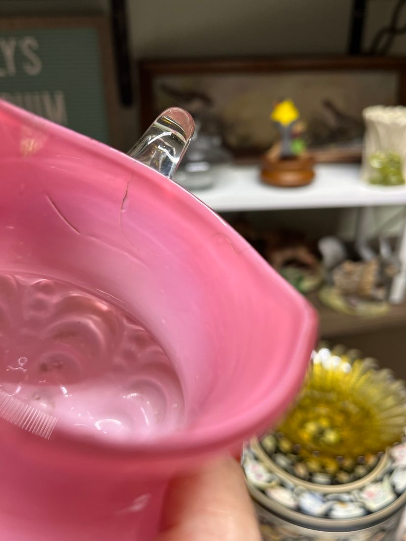 Note crack on pitcher! Still beautiful to have it turned towards the back. Jar is missing lid.