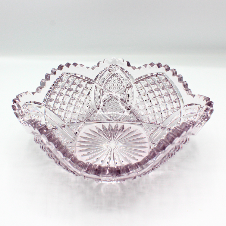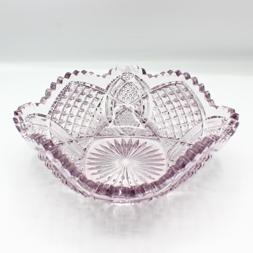 Antique Duncan’s Sons / George & Co. Diamond-Cut Scallop Edge Amethyst Pressed Glass Bowl - Six-Point Lavender Decorative Bowl Maker: Duncan’s Sons / George & Co. 1893-1900 (Washington, PA)
