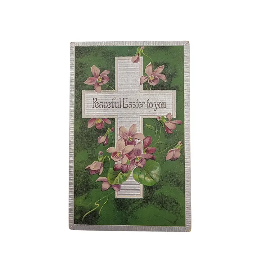 This vintage postcard whispers tales of Easter past. With embossed florals adorning a serene cross, it carries handwritten sentiments from 1909, a timeless keepsake.