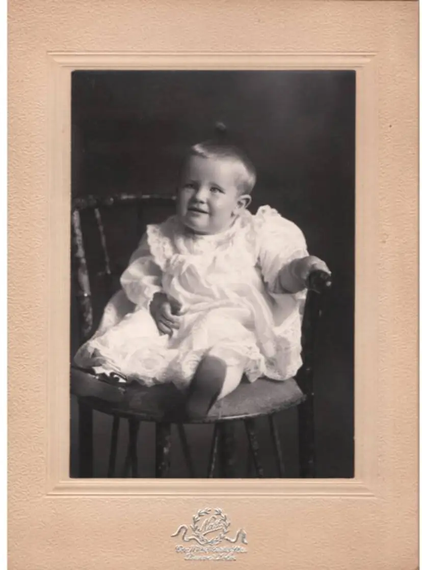 It shows an un-named child of about 18mos to 2 1/2 years old. Not know if boy or girl as customary for all children to wear this style of attire. Since this is a formal portrait, this would have been their best gown.